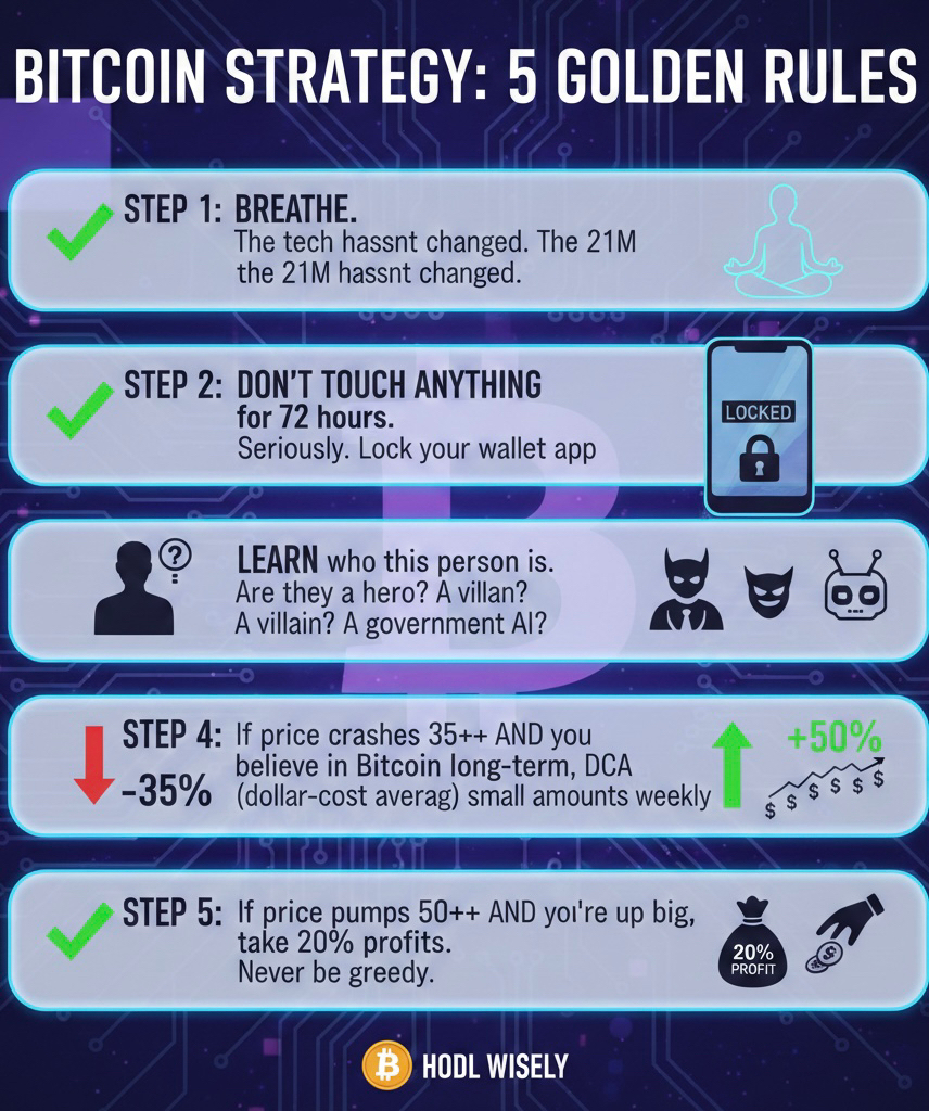 • Pre-Write Your Plan: "If BTC hits $60K, I buy $X. If it hits $150K, I sell Y%." Don't decide when emotional.