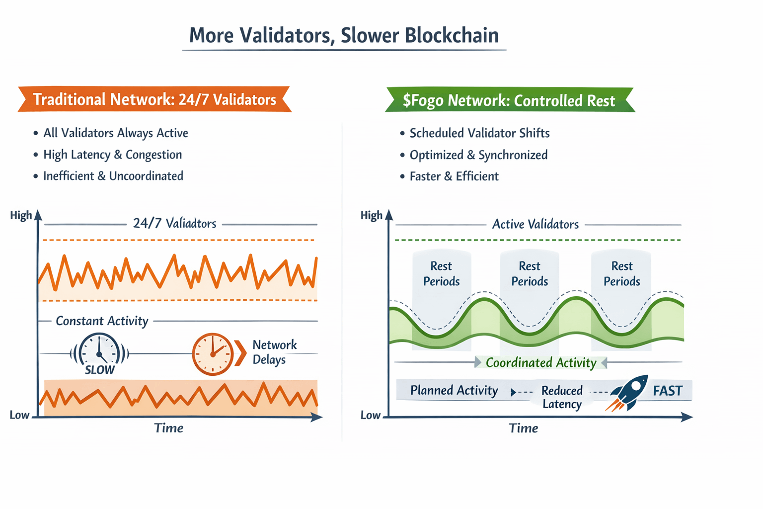 @Fogo Official does the same for blockchain. Validators work like a team peaking at times. They do not cause problems when they are not supposed to be active and the network stays secure and predictable.