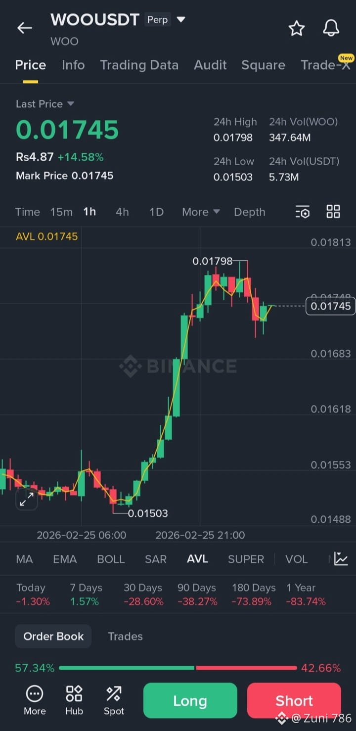 Market Note: February 2026 ke market data ke mutabiq $WOO me volatility zyada hai, isliye TP1 par apna 50% profit secure kar lena aqmandi hogi.