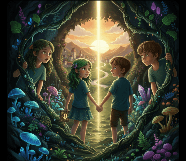 As the grotto's light softened, Lumina began to fade, her starlight gown dissolving. "The time for its full revelation is not yet here, but remember its principles: decentralization, transparency, and unchangeable truth." The ethereal coin sank back into the earth, and the grotto returned to its hidden state.