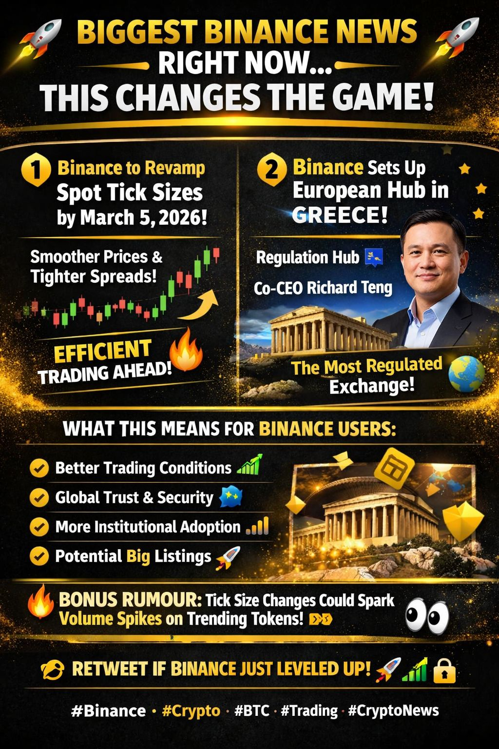 🔹 1) Binance to revamp spot market tick sizes by March 5, 2026!