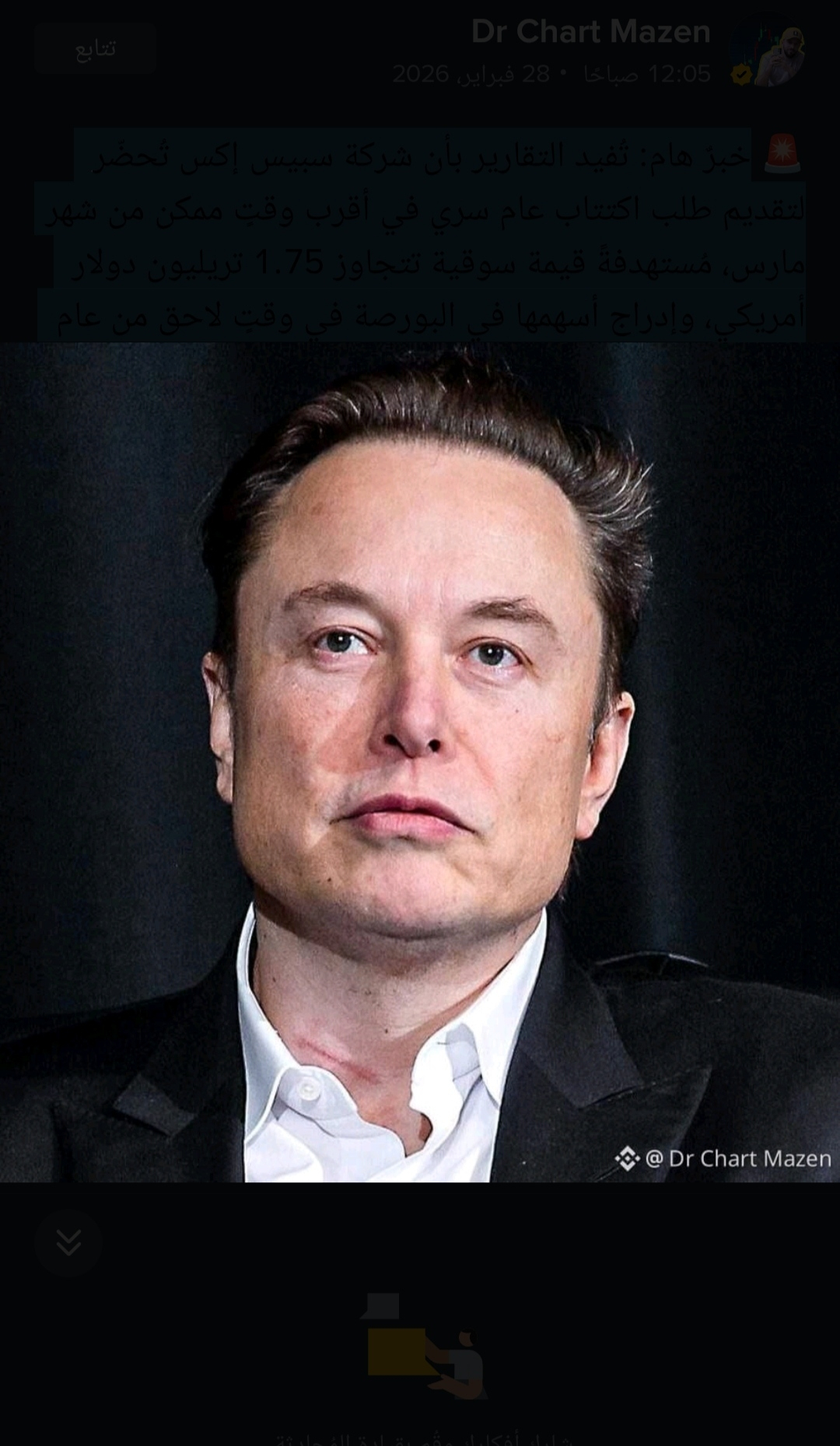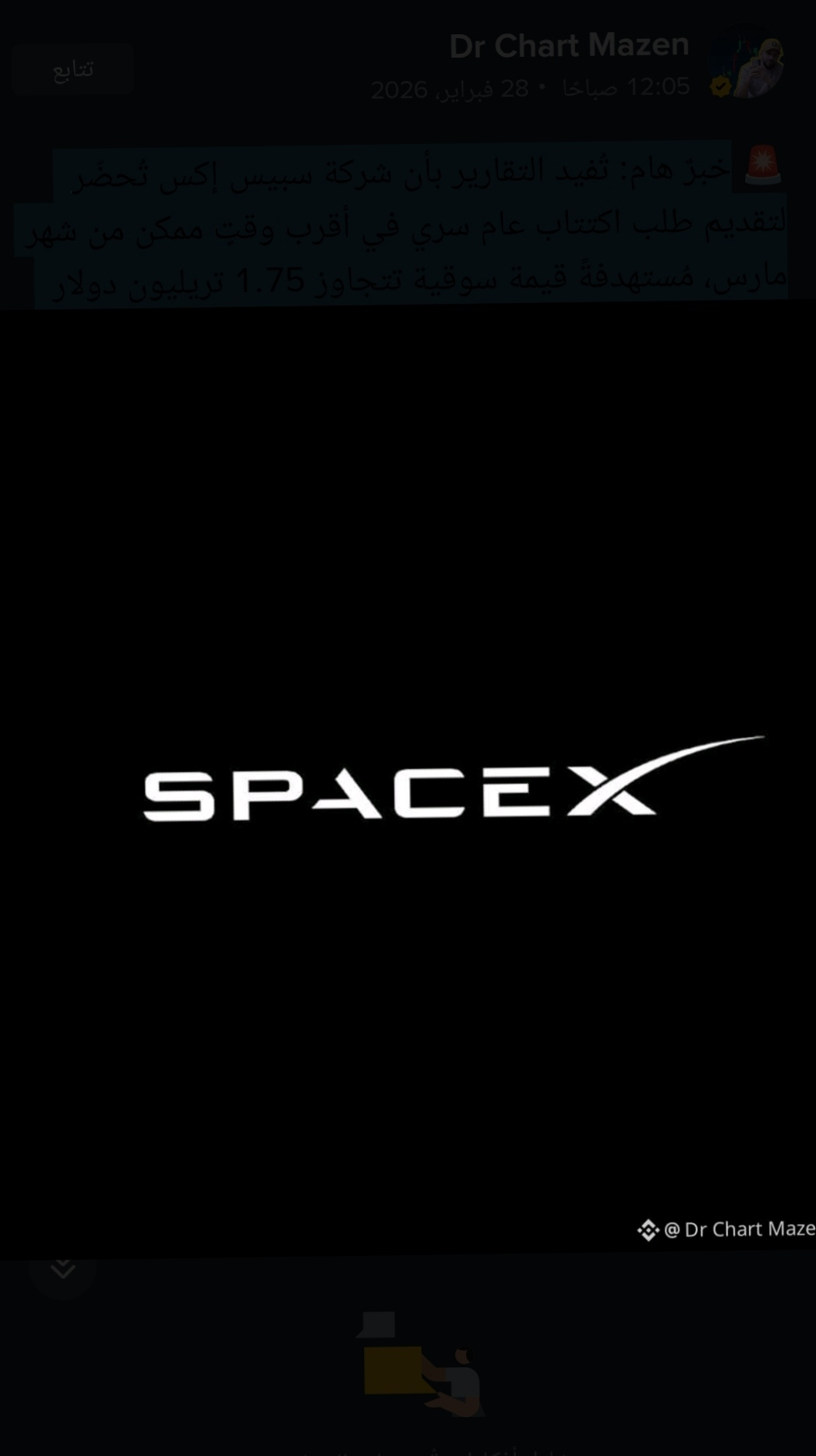 خبرٌ هام: تُفيد التقارير بأن شركة سبيس إكس تُحضّر لتقديم طلب اكتتاب عام سري في أقرب وقتٍ ممكن من شهر مارس، مُستهدفةً قيمة سوقية تتجاوز 1.75 تريليون دولار أمريكي، وإدراج أسهمها في البورصة في وقتٍ لاحق من عام 2026.#JaneStreet10AMDump #MarketRebound #英伟达财报超预期 #BitcoinGoogleSearchesSurge #MarketRebound