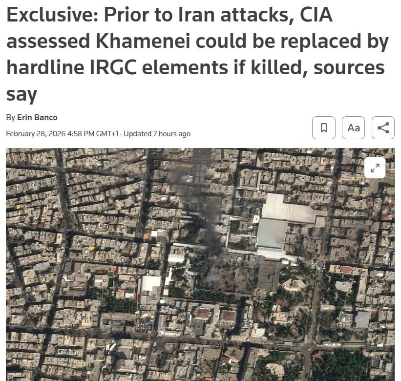 - Reuters пишет, что после убийства Хаменеи его место могут занять еще более радикальные фигуры из КСИР. Али Лариджани, секретарь Высшего совета национальной безопасности Ирана, который, по данным СМИ, сейчас фактически управляет страной после гибели Хаменеи, дал понять, что Тегеран продолжит удары по странам Персидского залива.
