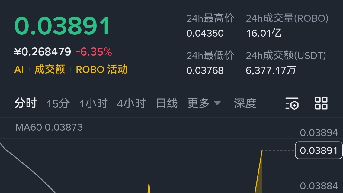 - 从 15 分钟 K 线图来看,价格在经历一波下跌后,近期出现明显反弹,当前价格(0.03891 USDT)已站上 MA60 均线(0.03873 USDT),这一信号表明短期多头力量有所增强,市场情绪有所修复。
