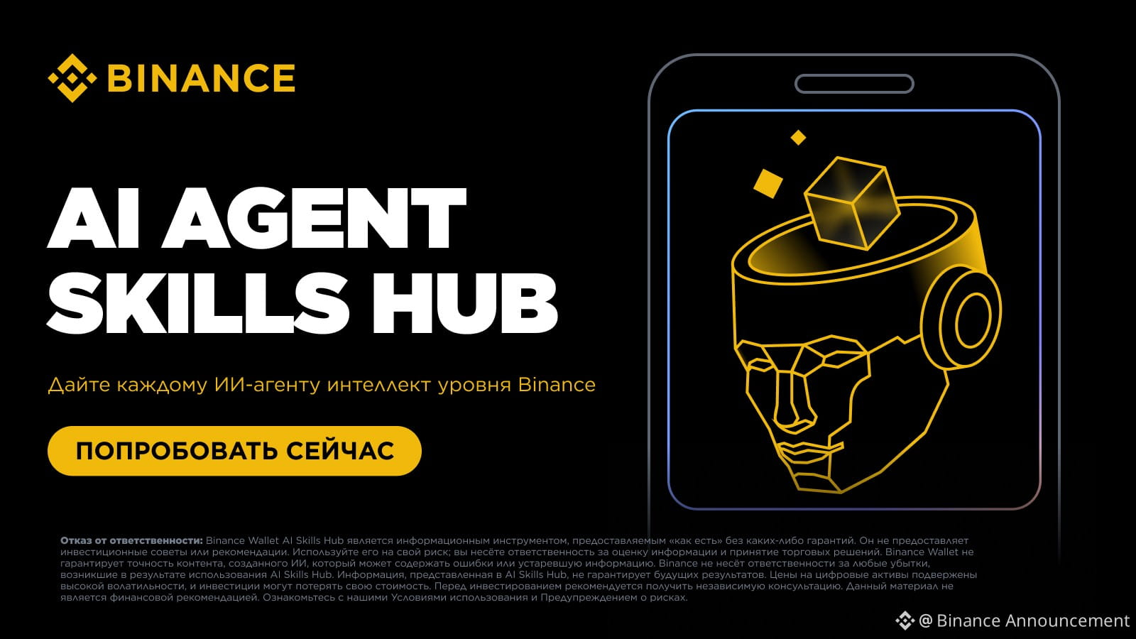 Binance Wallet AI Skills Hub — исключительно информационный инструмент. Binance Wallet AI Skills Hub и результаты его работы предоставляются вам «как есть» и «по мере доступности», без каких-либо заявлений или гарантий любого рода. Он не является инвестиционной, финансовой, торговой или иной рекомендацией; не представляет собой рекомендацию покупать, продавать или удерживать какие-либо активы; не гарантирует точность, актуальность или полноту представленных данных или анализа. Вы используете Binance Wallet AI Skills Hub и любую информацию, предоставляемую в связи с этой функцией, на свой страх и риск, и вы несете исключительную ответственность за оценку предоставленной информации и за все торговые решения, принимаемые вами. Кошелек Binance не одобряет и не гарантирует какую-либо информацию, сгенерированную ИИ. Любую информацию или сводку, сгенерированную ИИ, не следует использовать как единственную основу для принятия решений. Контент, сгенерированный ИИ, может включать или отражать информацию, взгляды и мнения третьих лиц, а также может содержать ошибки, предвзятость или устаревшую информацию. Кошелек Binance не несет ответственности за любые убытки или ущерб, понесенные в результате использования вами функции Binance Wallet AI Skills Hub или доверия к ней. Кошелек Binance может изменять или прекращать работу функции Binance Wallet AI Skills Hub по своему усмотрению, а функциональность может различаться в зависимости от региона или профиля пользователя. Цены цифровых активов подвержены высокому рыночному риску и волатильности. Стоимость ваших инвестиций может как снижаться, так и повышаться, и вы можете не вернуть вложенную сумму. Вы несете исключительную ответственность за свои инвестиционные решения, и Кошелек Binance не несет ответственности за любые убытки, которые вы можете понести. Прошлые результаты не являются надежным показателем будущих результатов. Инвестируйте только в те продукты, с которыми вы знакомы и риски которых понимаете. Перед совершением любых инвестиций вам следует тщательно оценить свой инвестиционный опыт, финансовое положение, инвестиционные цели и толерантность к риску, а также проконсультироваться с независимым финансовым консультантом. Данный материал не следует рассматривать как рекомендацию. Для получения дополнительной информации ознакомьтесь с нашими Условия использования и Предупреждение о рисках.
