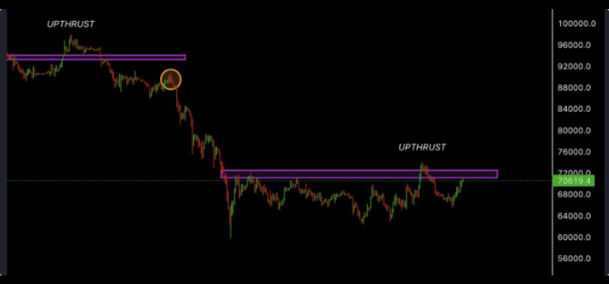 Ardi указывает, что последняя аналогичная сделка произошла в январе этого года, когда биткойн на короткое время преодолел 98,000 долларов. Похожая тенденция последовала за недавним прорывом биткойна на уровне 72,000 долларов, после чего цена вернулась к средней границе диапазона. Повышение ликвидности на продажу во время повторного тестирования обычно указывает на то, что трейдеры используют отскок для реализации прибыли.