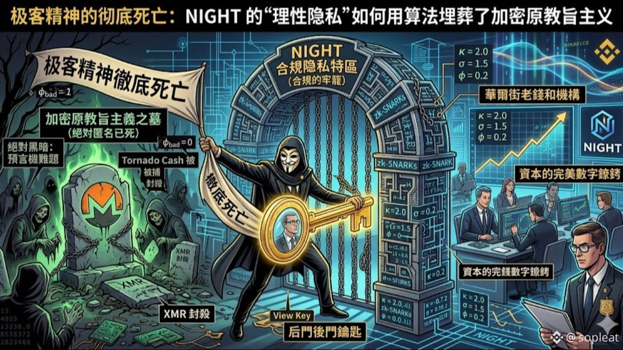 这简直是对中本聪时代去中心化原教旨主义最无情的嘲弄。它用极客们呕心沥血研发的 ZK 算法,亲手把这个行业推进了合规的牢笼。但作为投资者,我们绝不能被所谓的极客情怀蒙蔽双眼。正是这种抛弃了绝对黑暗、主动拥抱监管的“伪善底裤”,恰恰成为了华尔街巨鳄和实体企业敢于把海量资产搬上链的唯一通行证。那些至今还在意淫 NIGHT 能帮他们完美逃避追踪的散户,注定只是这场合规化浪潮里最可悲的流动性耗材。