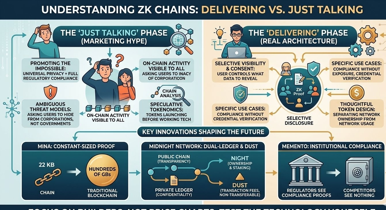 Based on data rather than hype, zero-knowledge privacy technology is real and production-ready for specific use cases. Thoughtful token economics matter more than marketing narratives. Institutional adoption is happening quietly. Privacy narratives must be realistic about threat models. Execution quality separates builders from talkers.