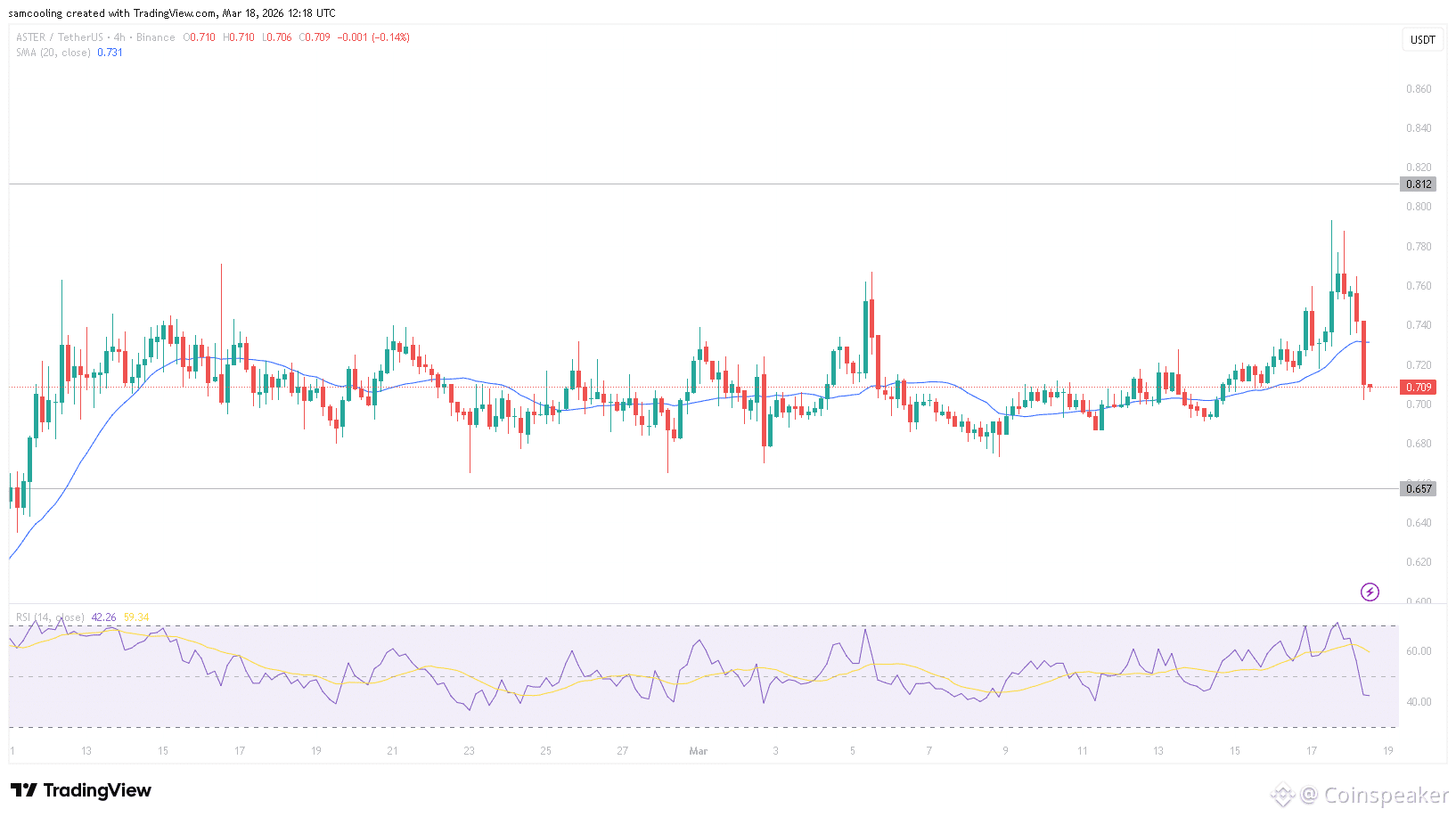 The chart structure indicates that a decisive breakout above $0.81 is required to confirm a trend reversal. Until that level is reclaimed with significant volume, ASTER remains in a consolidation pattern, susceptible to broader market volatility.