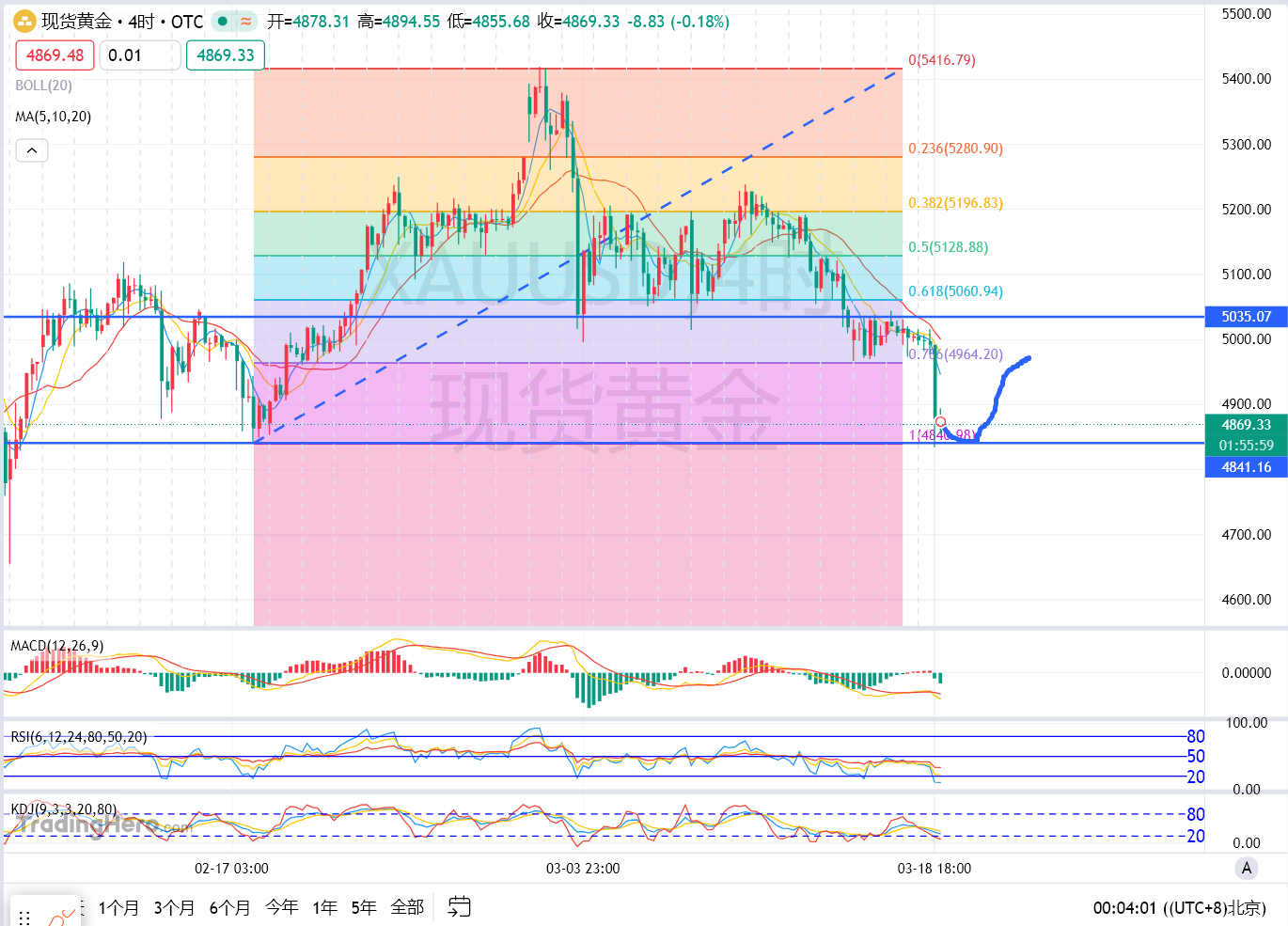 晚间黄金大幅跳水,跌破4960支撑后直接打到底部支撑4850附近,在黄金破位时顾哥给出提示黄金会下跌至4850,这个是全网公布过。