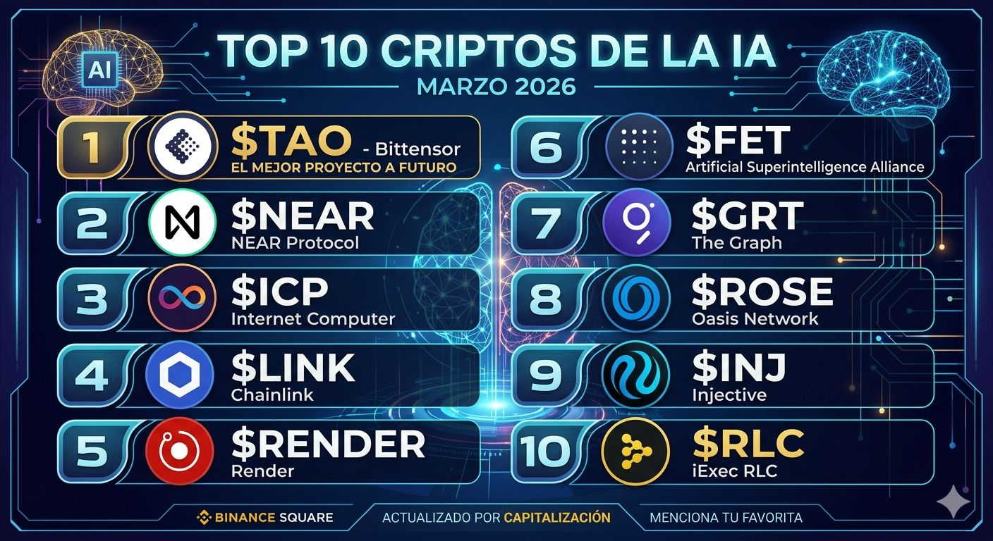 Внимание, сообщество Binance Square! 🚀 Конвергенция между Искусственным Интеллектом (ИИ) и Web3 переопределяет рынок.здесь у тебя есть обновленный рейтинг 10 проектов ИИ с наибольшей капитализацией и технологической прочностью.