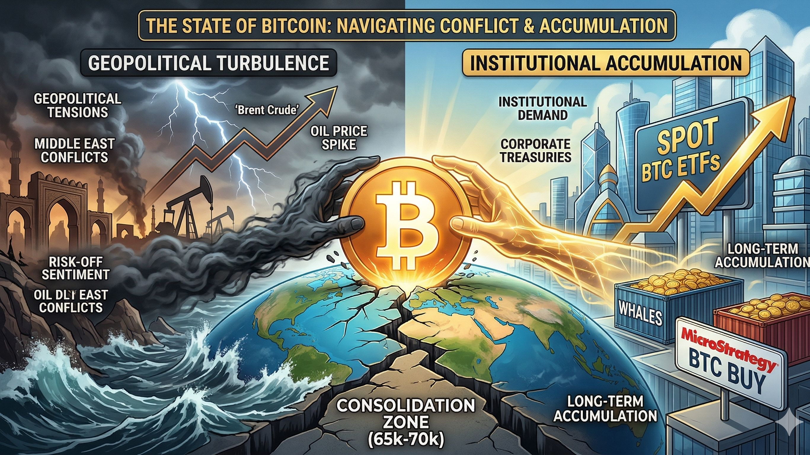 На конец марта 2026 года Биткойн $BTC оказывается на увлекательном перекрестке. Колеблясь вокруг отметки $68,000, ведущая криптовалюта мира в настоящее времяcaught в борьбе между сильным институциональным спросом и высоковолатильной макроэкономической средой.
