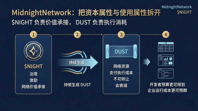Midnight, по крайней мере, не уклоняется от этой старой проблемы. Ответ, который он предлагает, заключается в том, чтобы разделить "капитализацию" и "функциональность"; NIGHT берет на себя управление, стимулы и сетевую ценность, тогда как действительно потребляемое — это ресурсы сети, такие как DUST, которые используются только для транзакций и выполнения конфиденциальных смарт-контрактов.