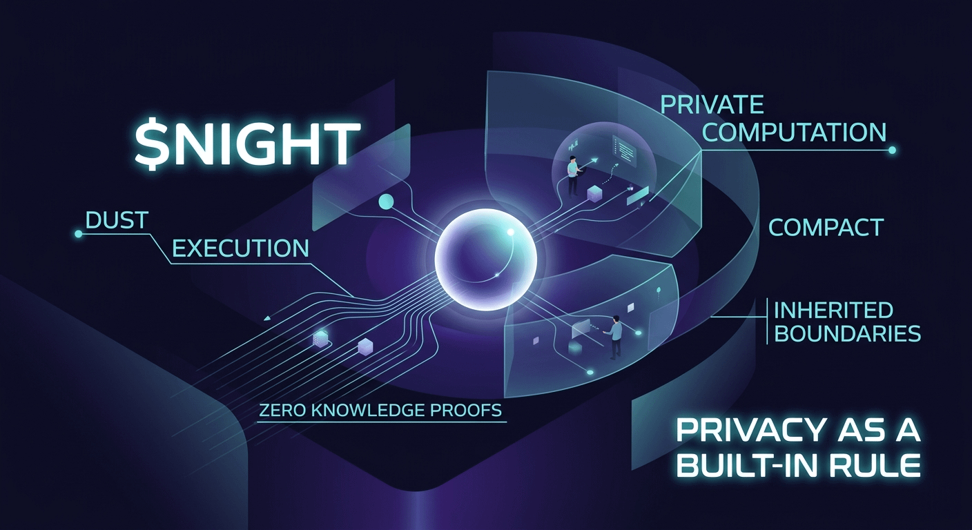 Ngoài ra còn có Compact, định nghĩa cách thức viết và xác minh các phép tính riêng tư. Phần này dễ bị bỏ qua, nhưng thực chất đó là nơi quyết định quyền kiểm soát việc lộ dữ liệu. Nếu lớp này được thiết kế tốt, thì mọi thứ được xây dựng trên đó sẽ tự động kế thừa các giới hạn đó. Đối với tôi, phần thú vị không còn là nhãn bảo mật nữa, mà là liệu cấu trúc này có thể duy trì được khi mọi người bắt đầu sử dụng nó mà không cần suy nghĩ về nó hay không. Bởi vì đó thường là lúc một thiết kế chứng minh được giá trị của nó, không phải khi nó được giải thích, mà khi nó trở nên vô hình trong quá trình sử dụng. $NIGHT #night @MidnightNetwork