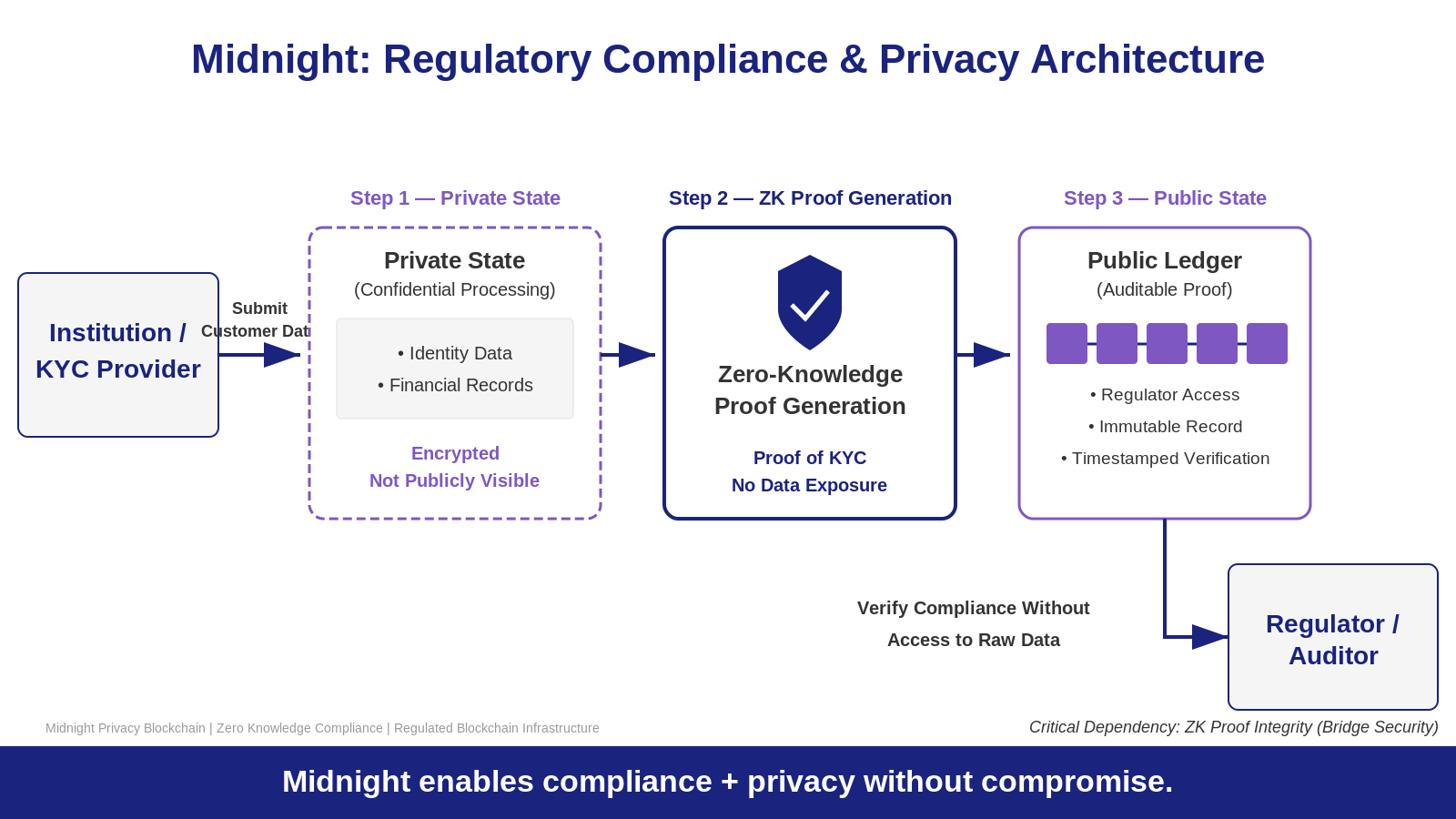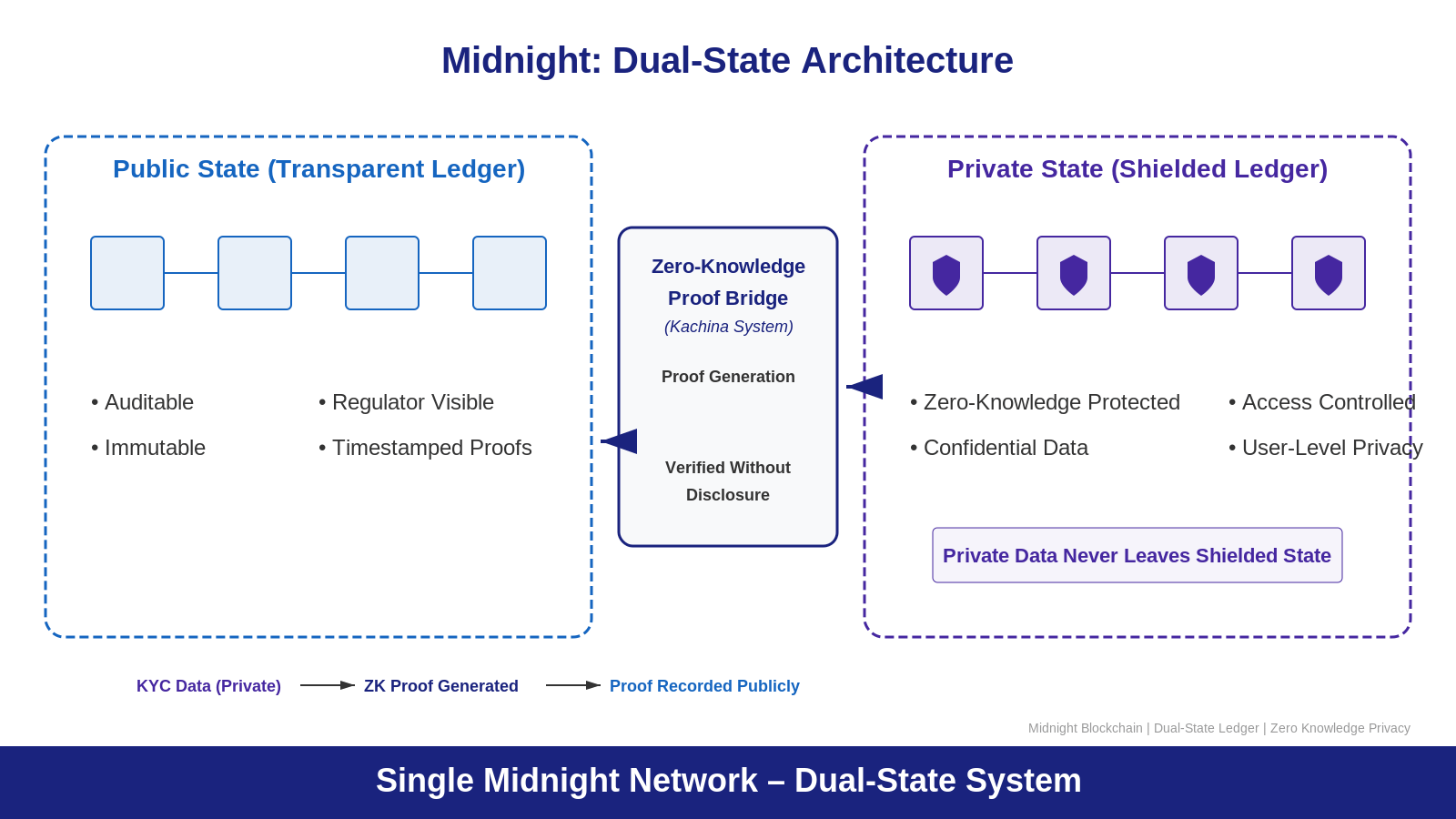 Why does that matter? Because every real-world compliance use case that Midnight is targeting requires both states to exist at the same time. A financial institution running KYC verification on Midnight needs the proof of verification to be publicly recorded — auditable by regulators, timestamped, immutable. But the underlying customer data that generated that proof needs to stay in Midnight's private state, shielded from competitors, bad actors, and anyone without explicit authorization to see it. On a fully transparent chain, you cannot have that. On a fully private chain, you cannot have that either. Midnight's dual-state architecture is the only design that satisfies both requirements simultaneously without compromise.