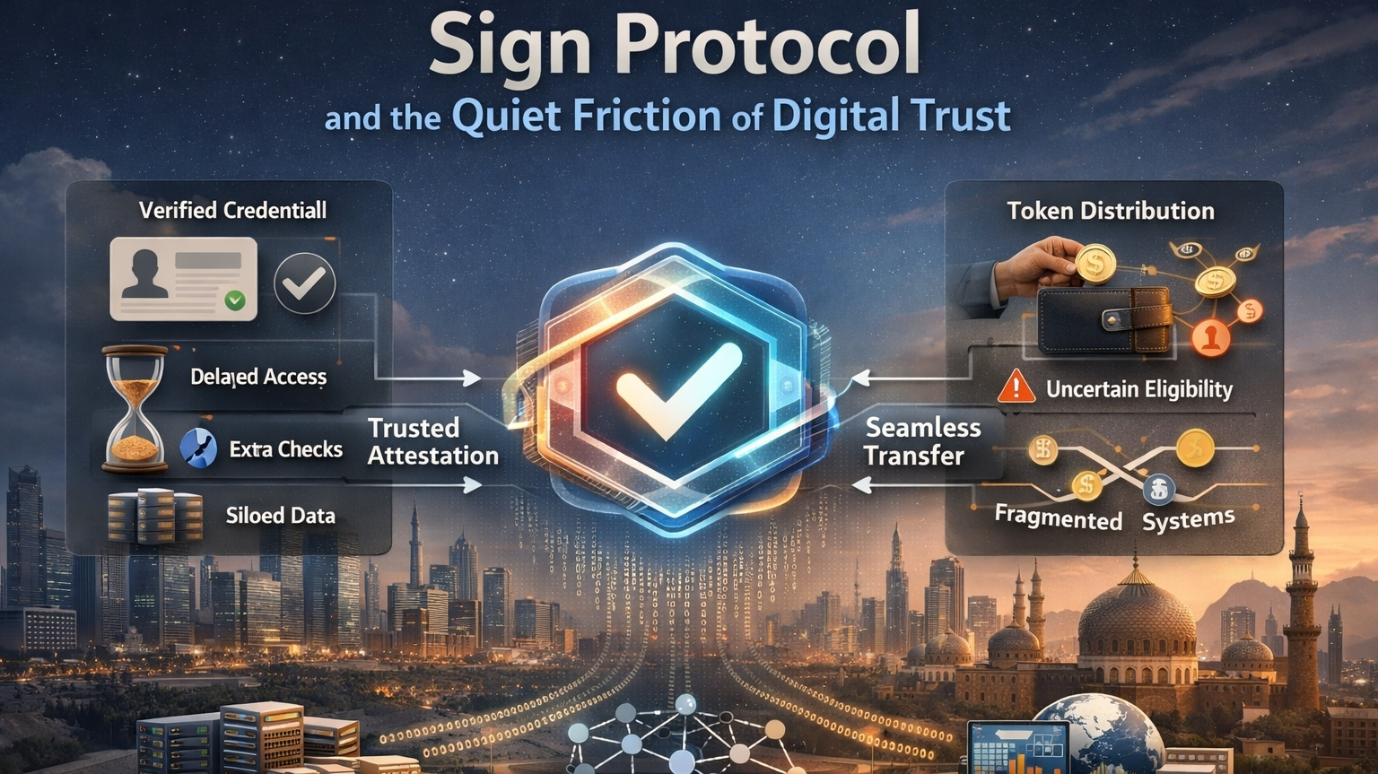 Я начал замечать что-то о Sign Protocol. Он продолжает появляться в части рынка, о которой большинство людей на самом деле не говорит. Не в громкой части. Не в брендинге, не в постах о запуске, не в поверхностном возбуждении. Я имею в виду тихое пространство, где одна система должна доверять тому, что другая система уже знает, и почему-то это все еще не происходит гладко. Все выглядит готовым. Инструменты существуют. Пользователь уже был проверен. Запись уже там. И все же есть пауза. Небольшое сомнение. Небольшое дополнительное трение. Это то пространство, к которому я продолжаю возвращаться, когда смотрю на Sign Protocol.