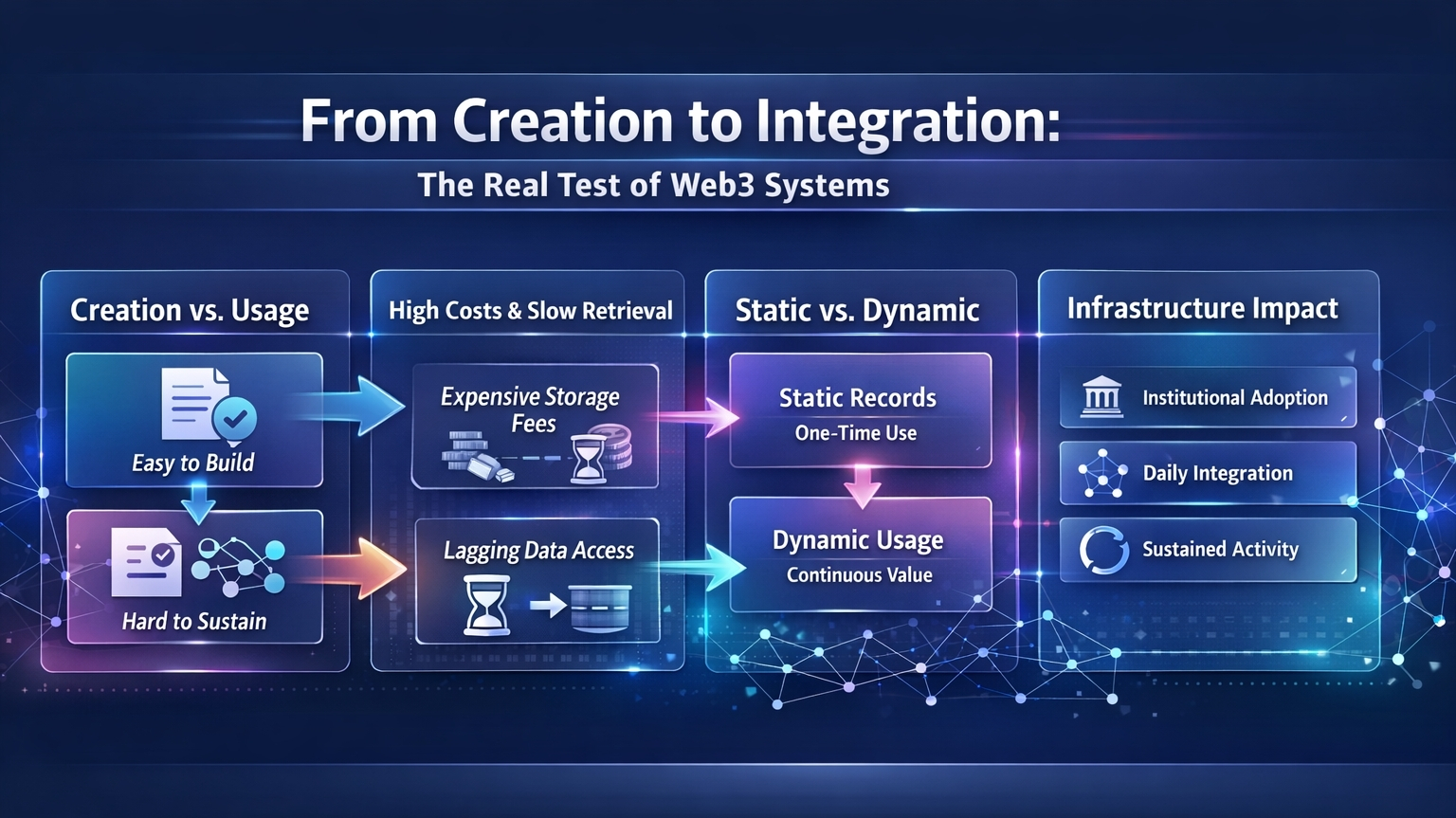 На уровне архитектуры дизайн знаком: держите небольшие доказательства в цепочке, храните большие файлы вне цепочки, якорите хэши для сохранения целостности. Это стандартный компромисс, который используют большинство систем Web3, чтобы сбалансировать безопасность и масштабируемость.