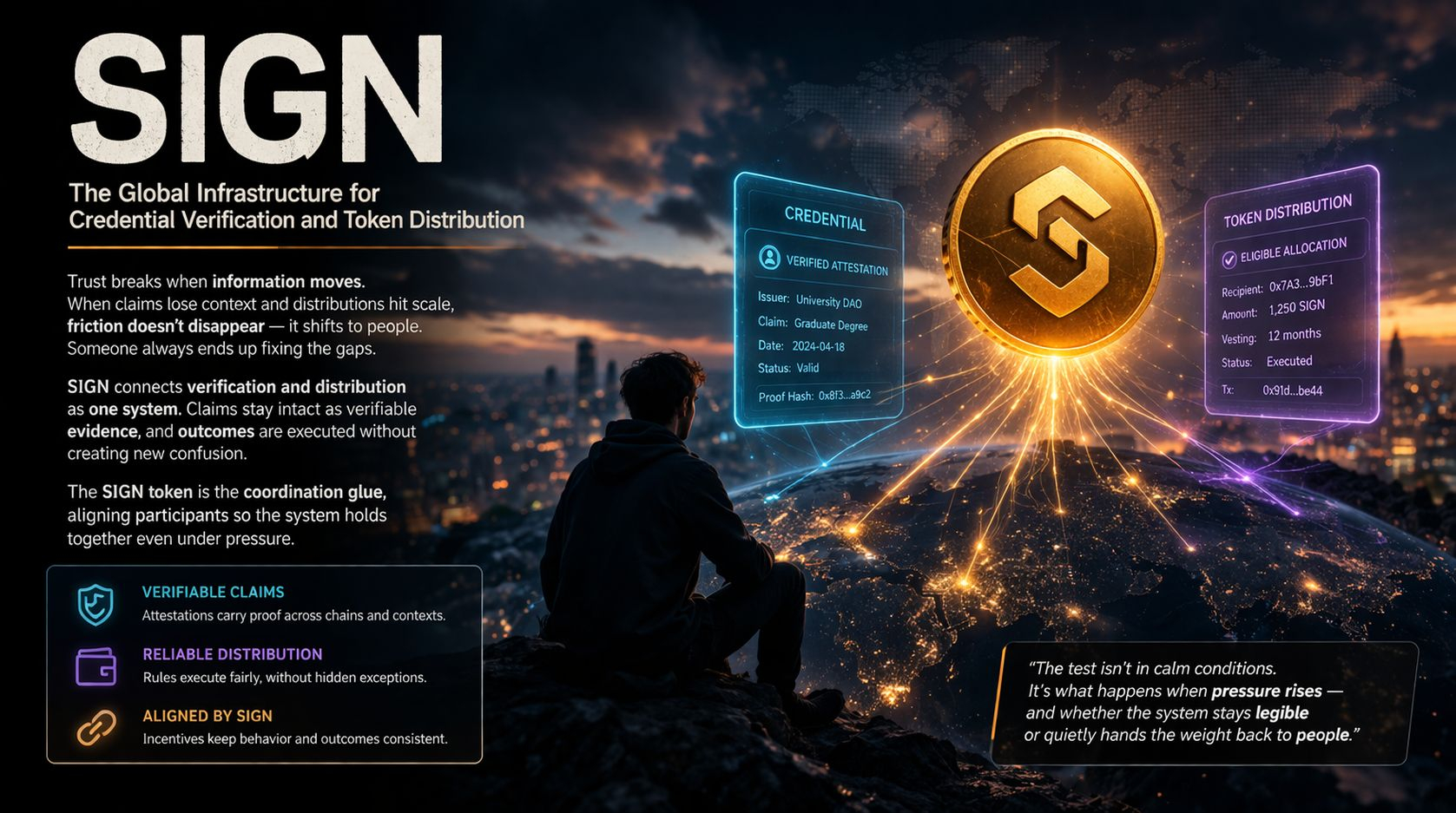 What’s been sitting with me about SIGN is that it doesn’t treat these as separate problems. It kind of leans into the uncomfortable part—that verification and distribution are tied together whether we like it or not. You can’t really trust an outcome if you don’t trust the claim behind it. And you can’t claim something is verified if the result of it creates new confusion. So instead of polishing one side, it tries to hold both at once. That’s not a flashy idea, but it feels more honest.