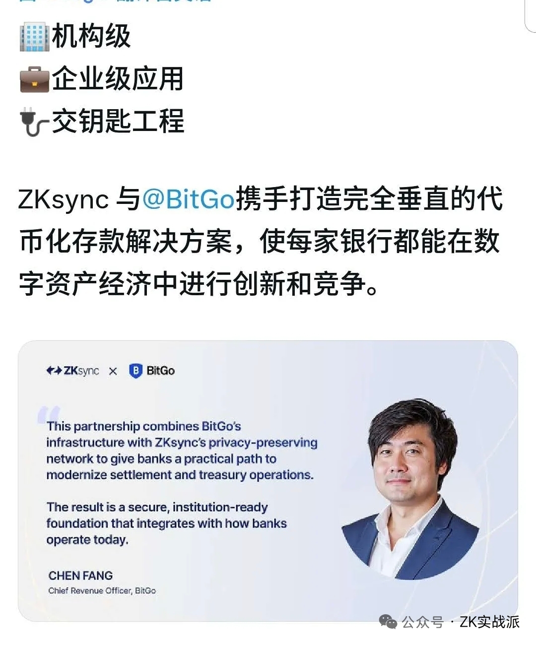 - Техническая база: интеграция высокой пропускной способности ZK-Rollup + конфиденциальности с доказательством нулевых знаний + соблюдение норм BitGo, стоимость транзакций снижена до 1/1000 от основной сети, одновременно удовлетворяя требованиям конфиденциальности данных банков и нормативным требованиям.