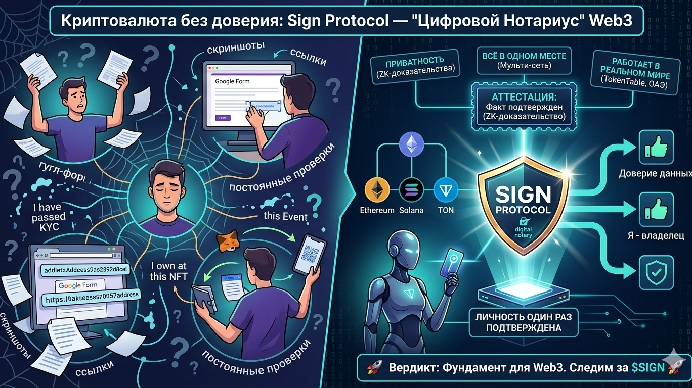 Реальные дела: Это не просто «очередной щиткоин». У них есть TokenTable, через который раздали токены уже миллионам людей, и даже госпроекты в ОАЭ. Sign Protocol строит фундамент. Это как интернет-протоколы, которые мы не видим, но без которых ничего не работает. Когда пыль от хайпа уляжется, останутся именно такие инфраструктурные проекты.
