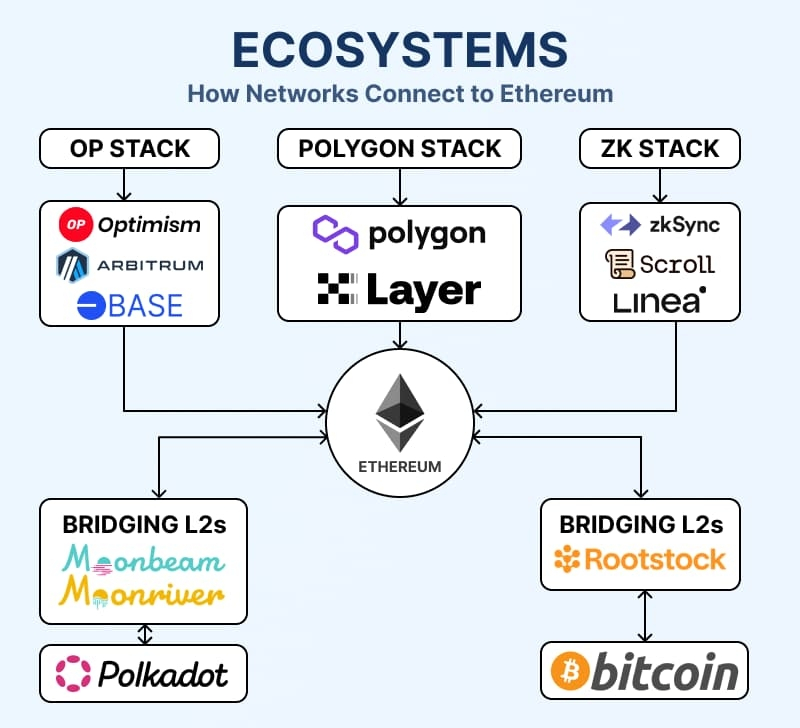 Настоящая война — это сборы. Arbitrum в среднем $0.07/tx, Optimism $0.11, Polygon $0.03 — но AggLayer Polygon обещает унифицированное состояние на более чем 100 цепях. Войны доходов также важны: $ARB захватывает 62% сборов в казну DAO, $OP сжигает 100% доходов секвенсора (3.2M $OP дефлировано), MATIC выделяет 30% валидаторам. Рыночные капитализации токенов L2 отражают битву: $ARB $2.8B, $OP $1.9B, $MATIC $1.2B — но миграция $MATIC/POL может изменить сценарий.