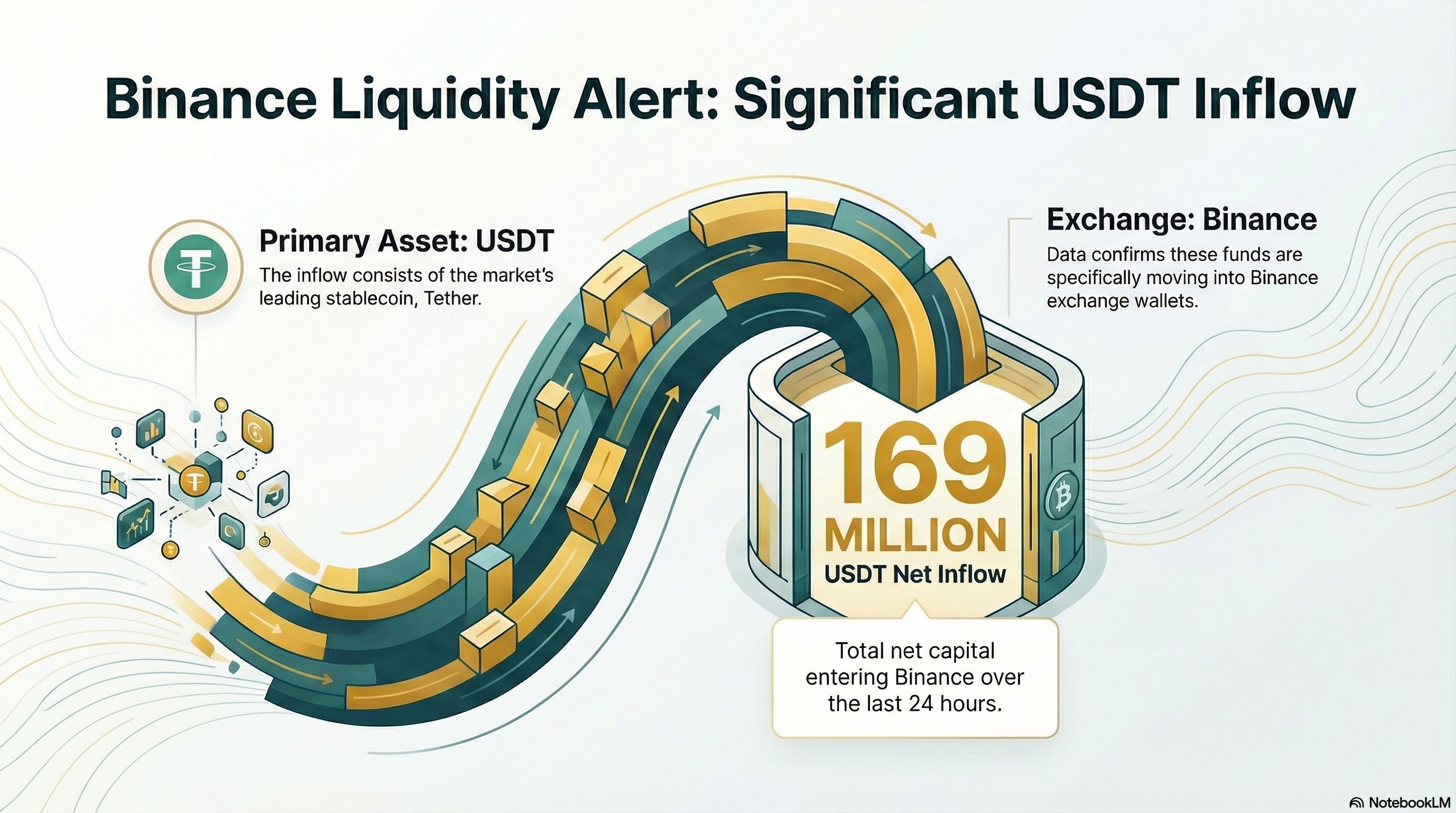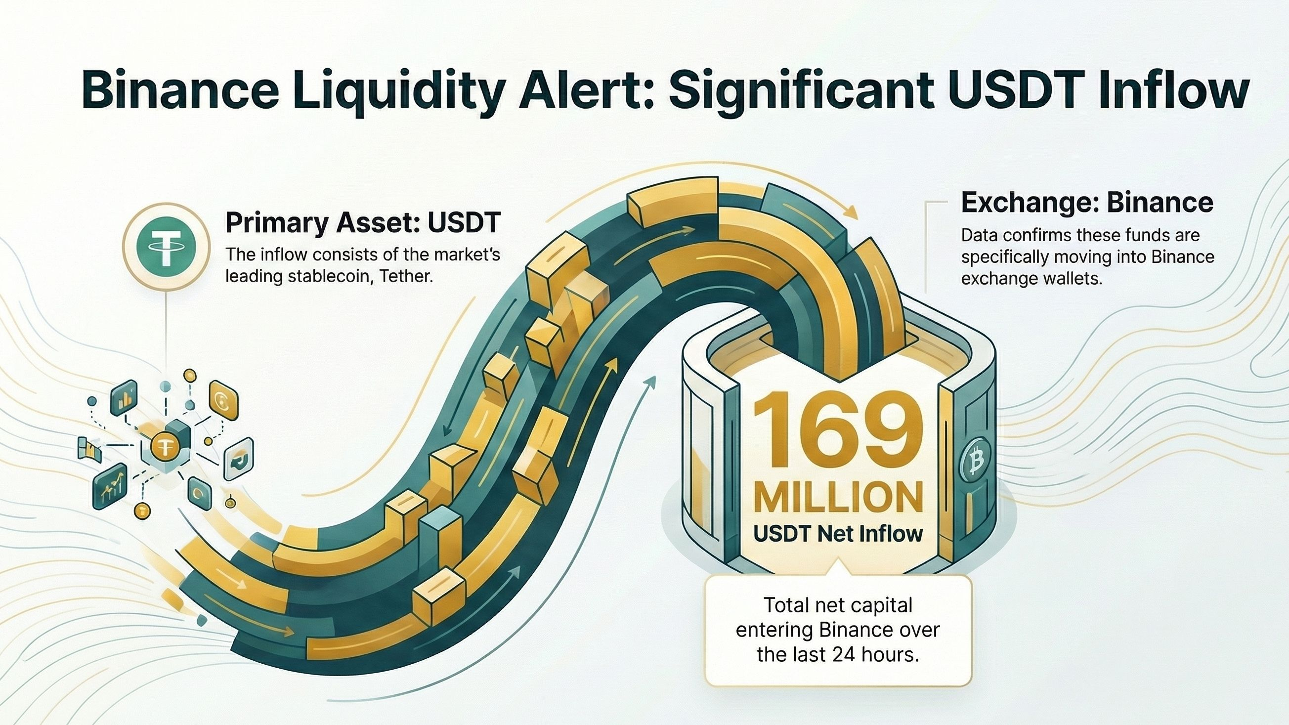 Recent data shows that Binance recorded a net inflow of $169 million in Tether (USDT) over the past 24 hours.