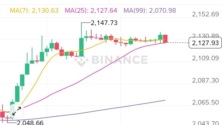 👉 Price is hovering near MA(7) & MA(25), while MA(99) remains far below — indicating an overall bullish structure.