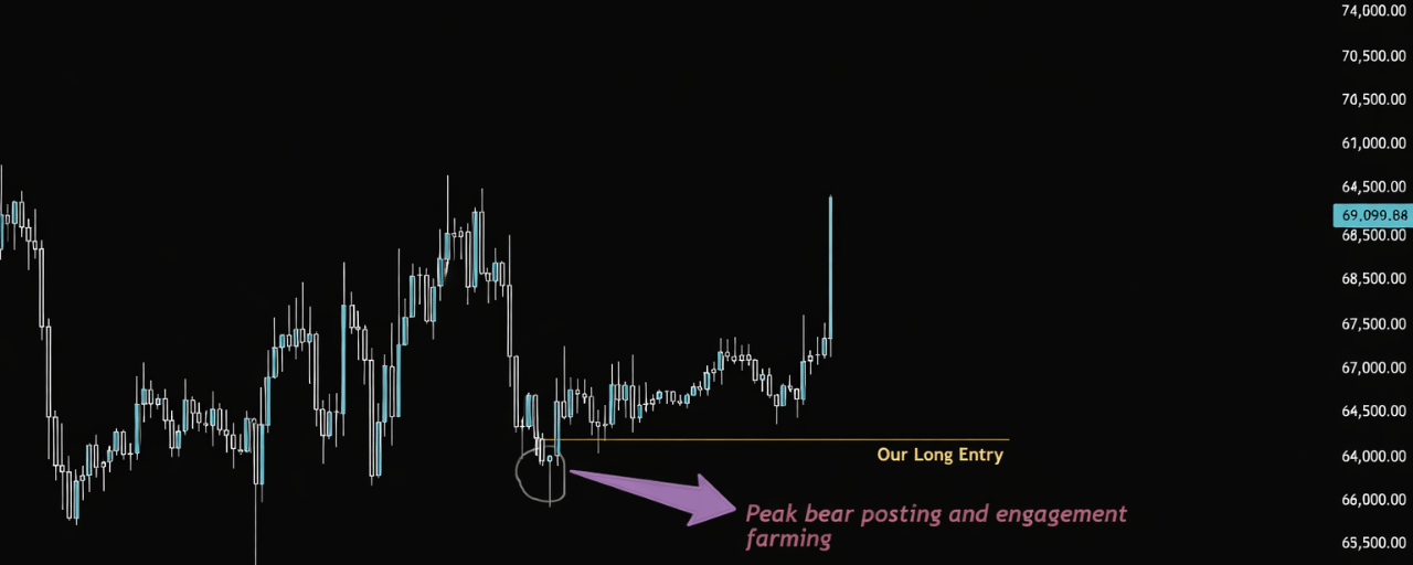 Если цена продолжит удерживаться выше уровня поддержки, есть высокая вероятность, что произойдет резкий скачок ликвидности в область 72K–75K перед тем, как принять решение о дальнейшем направлении.