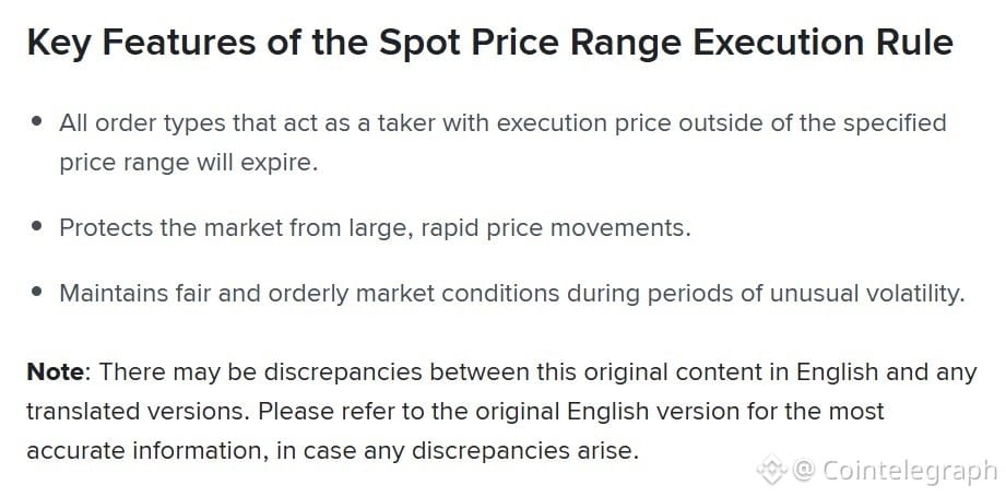 Unlike stop-loss or limit orders set by individual users, Binance said PRER is an exchange-level market protection mechanism applied during order matching. This means trades can be restricted or partially canceled based on system-defined price limits, regardless of user intent.