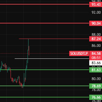 如果今天回踩跌破83这个位置,那小级别开始回调,下方支撑位留意81-78-76这几个位置附近!#solana