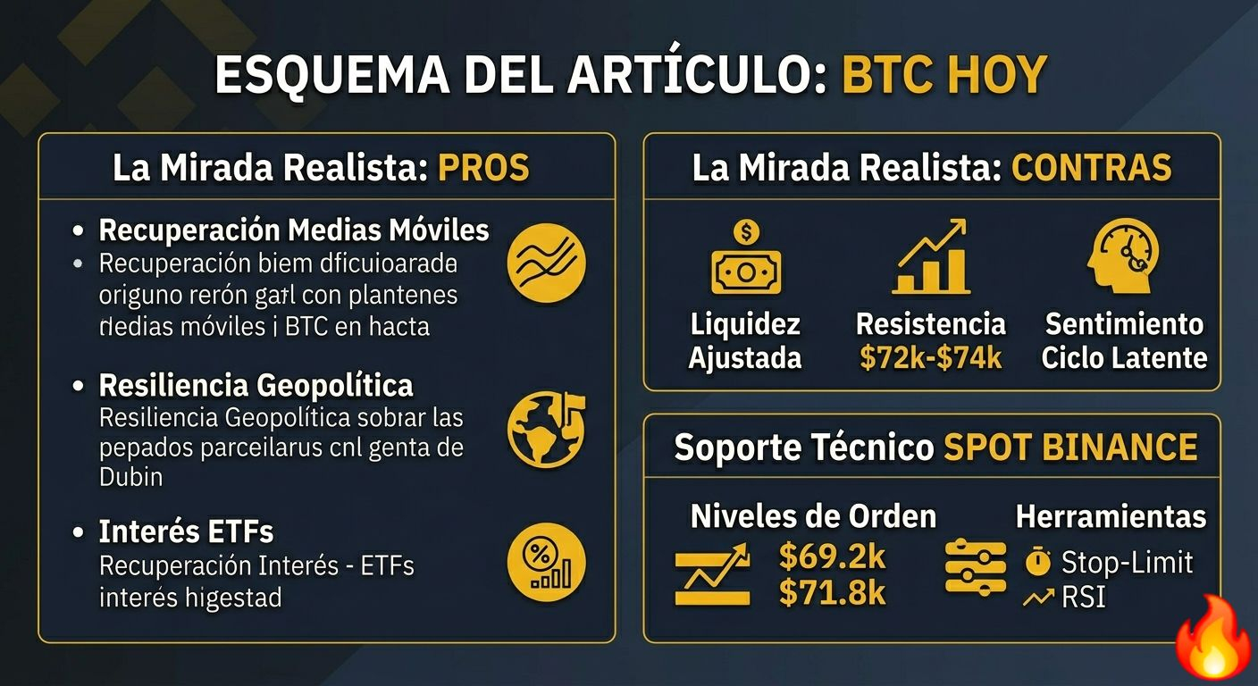 2. Resistencia en los $72,000 - $74,000: Esta zona se ha convertido en un "muro" técnico. Hasta que no veamos un cierre diario sólido por encima de los $74,500, el riesgo de un rechazo hacia los $65,000 sigue presente.