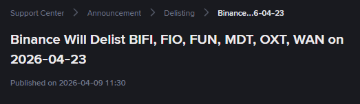 Действуйте до 23 апреля 2026 года – продавайте на Binance или переводите на другую биржу/кошелек, который все еще поддерживает актив.