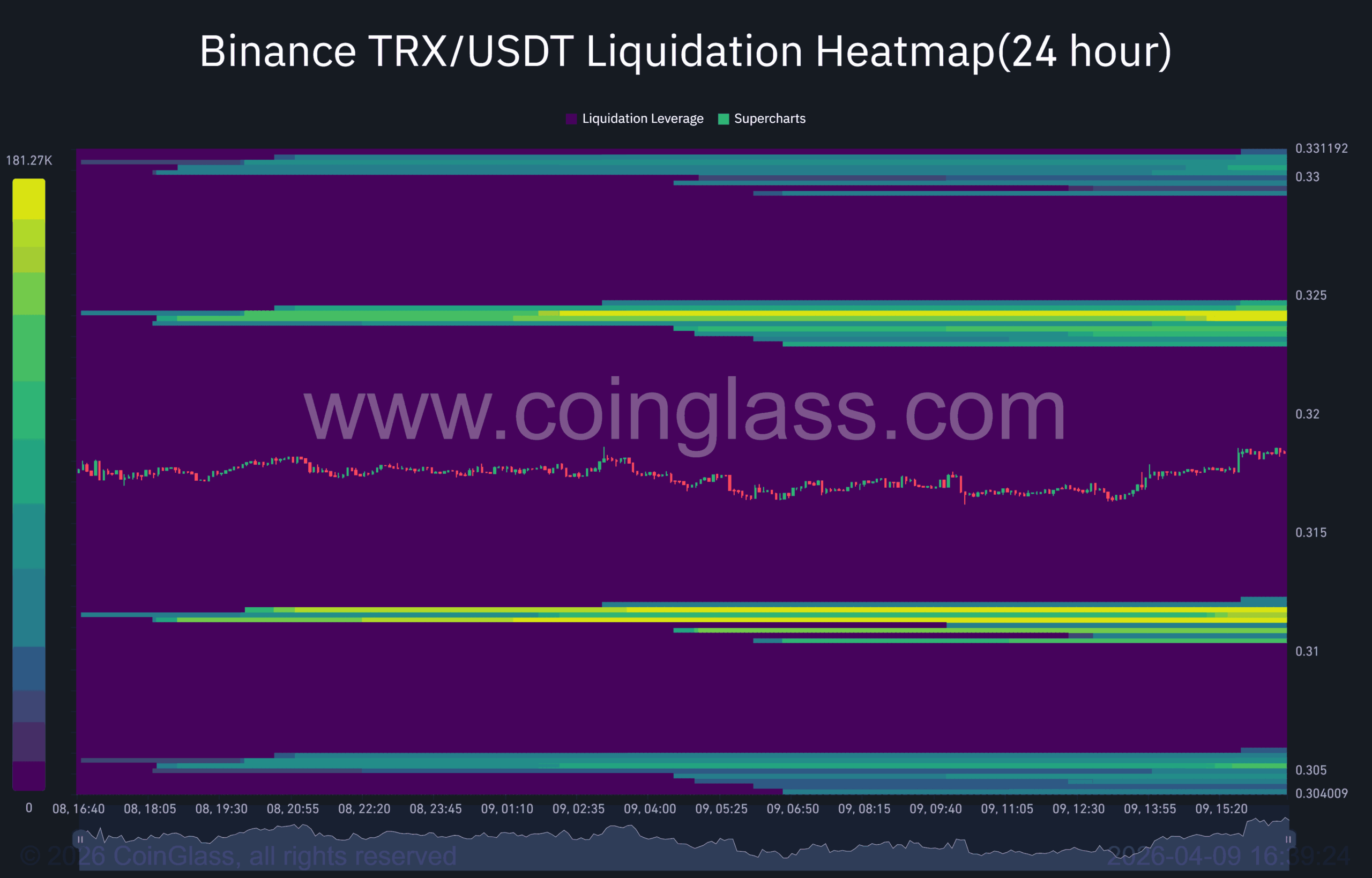 В настоящее время около 0.324 долларов США, есть явная зона концентрации ликвидности, которую можно рассматривать как важную цель на короткий срок. Если цена продолжит расти, здесь вполне возможно, что это станет центром следующей волны игры.