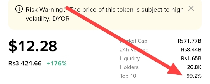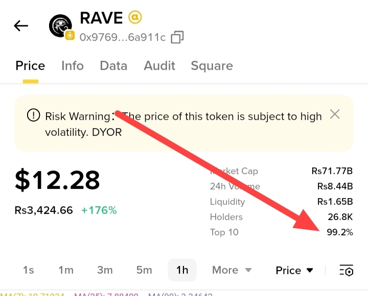 Эта монета может показаться резко растущей, но если мы сосредоточимся на одной ключевой проблеме — более 99% предложения, удерживаемого десятью крупнейшими кошельками — это само по себе вызывает серьезные опасения. Истинное здоровье любого крипто-проекта отражается в его распределении. Когда почти все предложение сосредоточено в нескольких кошельках, это означает, что контроль за ценами также сосредоточен в руках немногих. В такой ситуации рынок больше не свободен; он становится контролируемым рынком.
