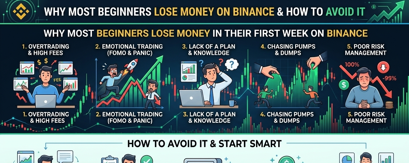Most new traders enter Binance with excitement big expectations, and zero real preparation. That combination is exactly why many end up losing money in their first few days.