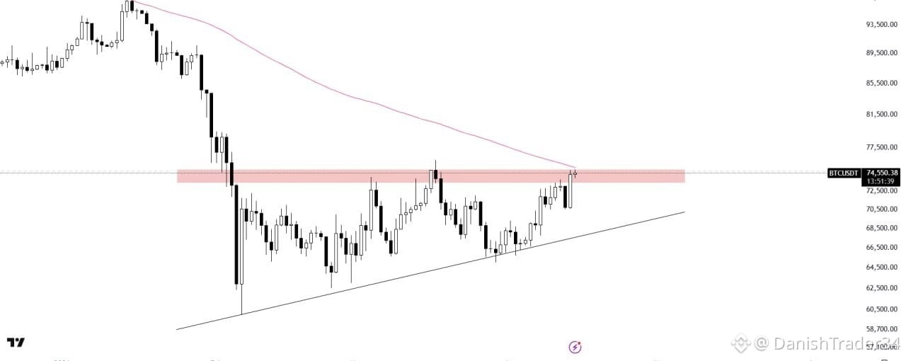 Bitcoin is trading within the horizontal supply zone of an ascending triangle pattern, facing resistance at this key level.
