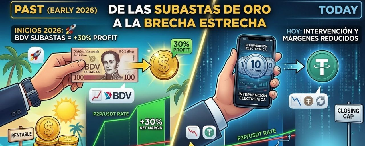 В начале 2026 года мы пережили "золотую эпоху" с аукционами валют. Банк Венесуэлы (BDV) стал главным игроком, позволяя многим пользователям получить до 30% чистой прибыли через официальный цикл покупки и продажи в P2P, как уже знают wallys и zinlers. 📈💰