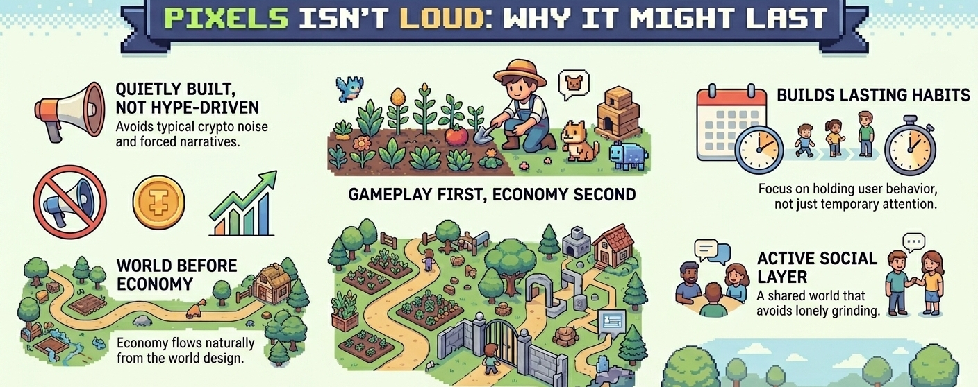 But right now, Pixels feels more grounded than most. Less like a pitch, more like a real attempt to build something people might actually care about after the noise fades.