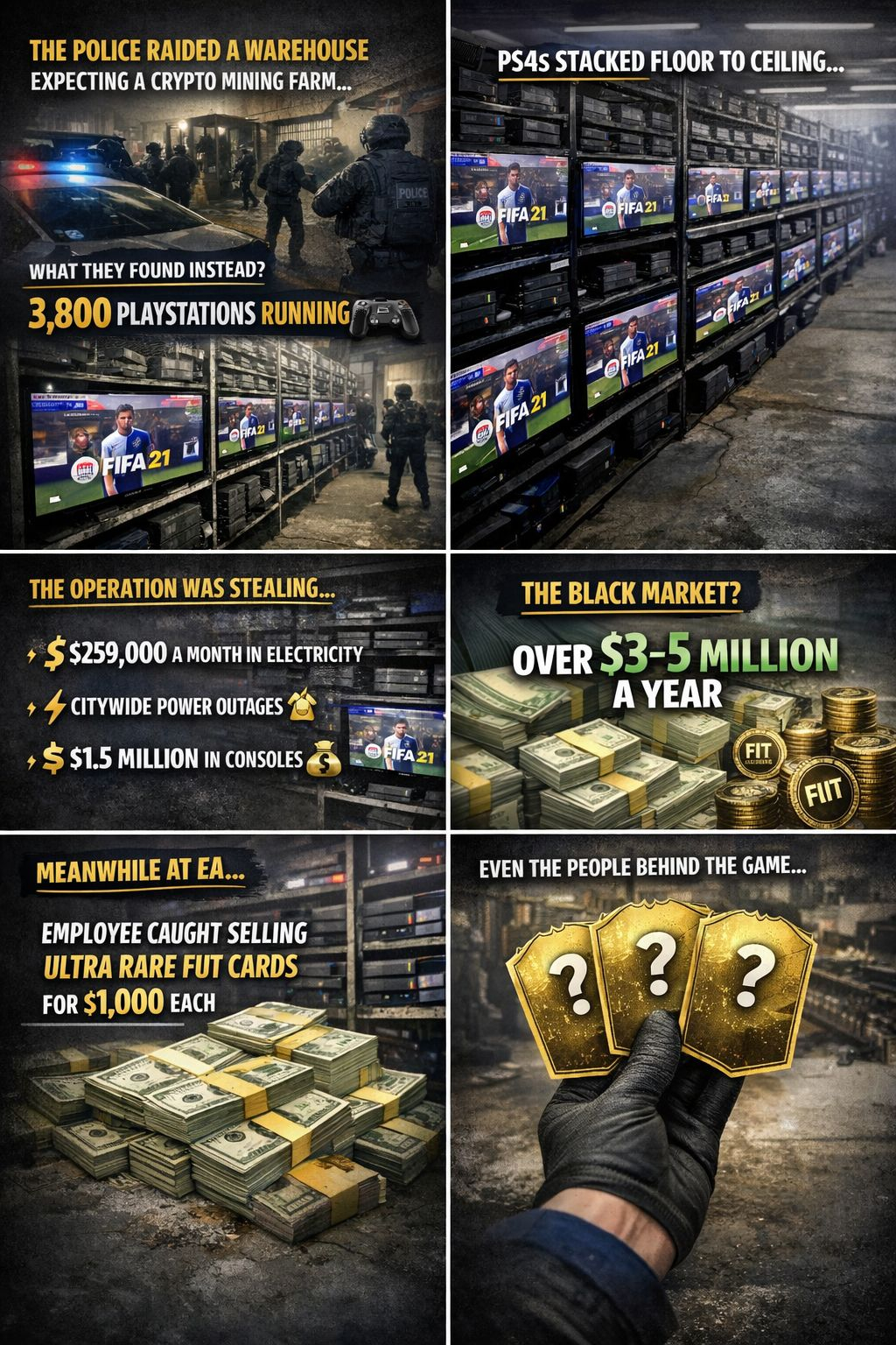 Ukraine’s security service hit a warehouse in Vinnytsia and discovered PS4 consoles stacked from floor to ceiling—every single one running FIFA 21 on autopilot.