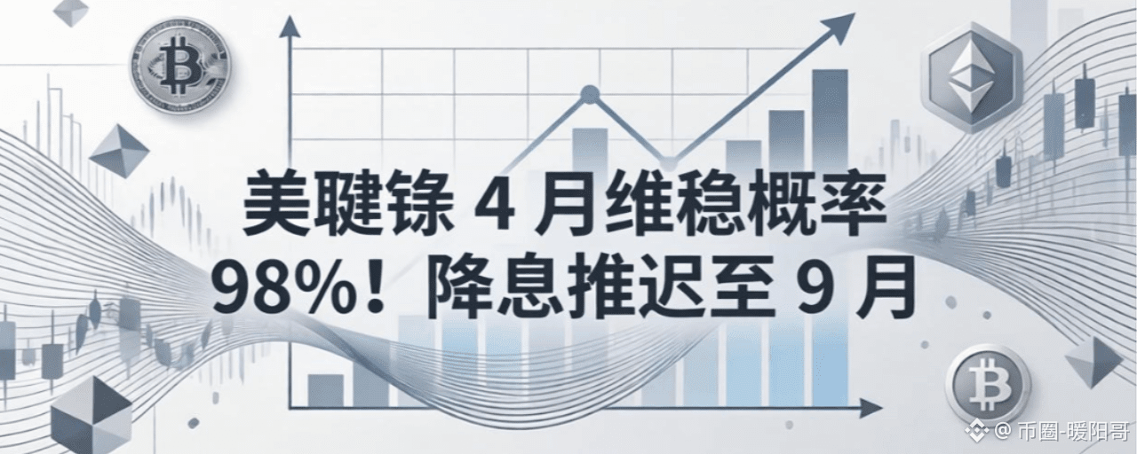 警告!98%的概率锁定美联储4月利率不变,降息窗口直接推迟到9月🚨 你手里的BTC、ETH,还有那些布局的山寨币,定价逻辑可能已经被彻底改写——别再抱着“降息必涨”的旧思维死等,高利率时代,加密资产的赚钱逻辑,早就换了玩法!
