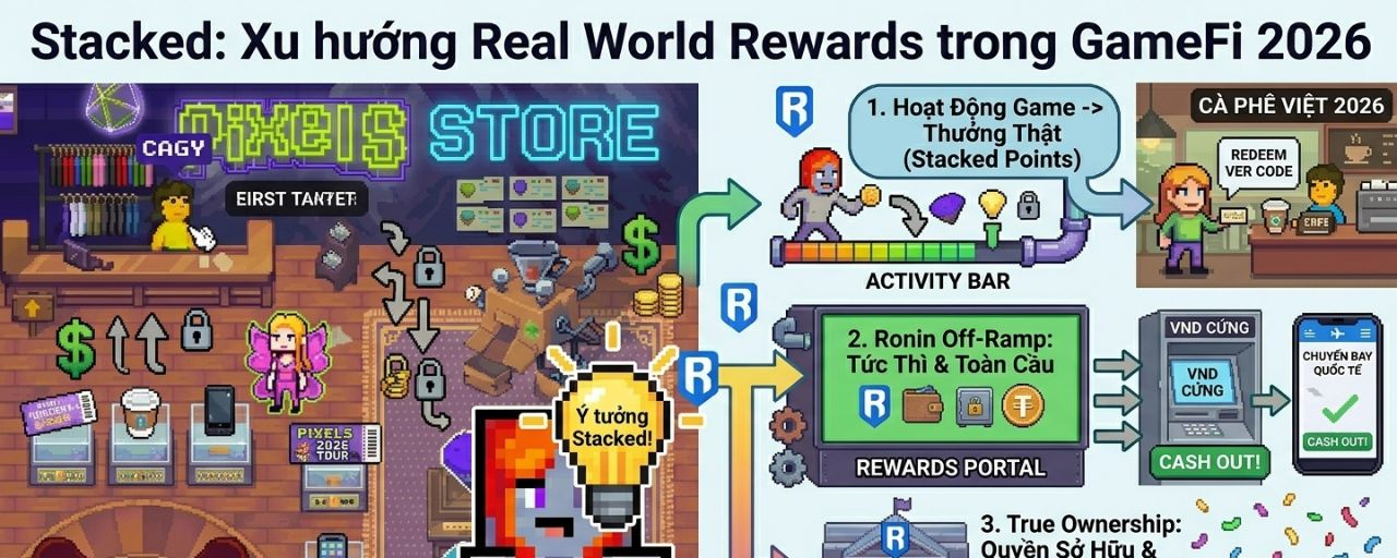 Năm 2026, GameFi đang trải qua một giai đoạn chuyển mình quan trọng. Sau nhiều năm chứng kiến vô số dự án Play-to-Earn ra đời rồi sụp đổ vì lạm phát token, bot farming và giá trị token nhanh chóng về zero, cộng đồng bắt đầu chú ý nhiều hơn đến một xu hướng mới: Real World Rewards, người chơi có thể nhận phần thưởng mang giá trị thực tế như USDC, stablecoin, tiền mặt hoặc gift card thay vì chỉ toàn token game dễ biến động mạnh.
