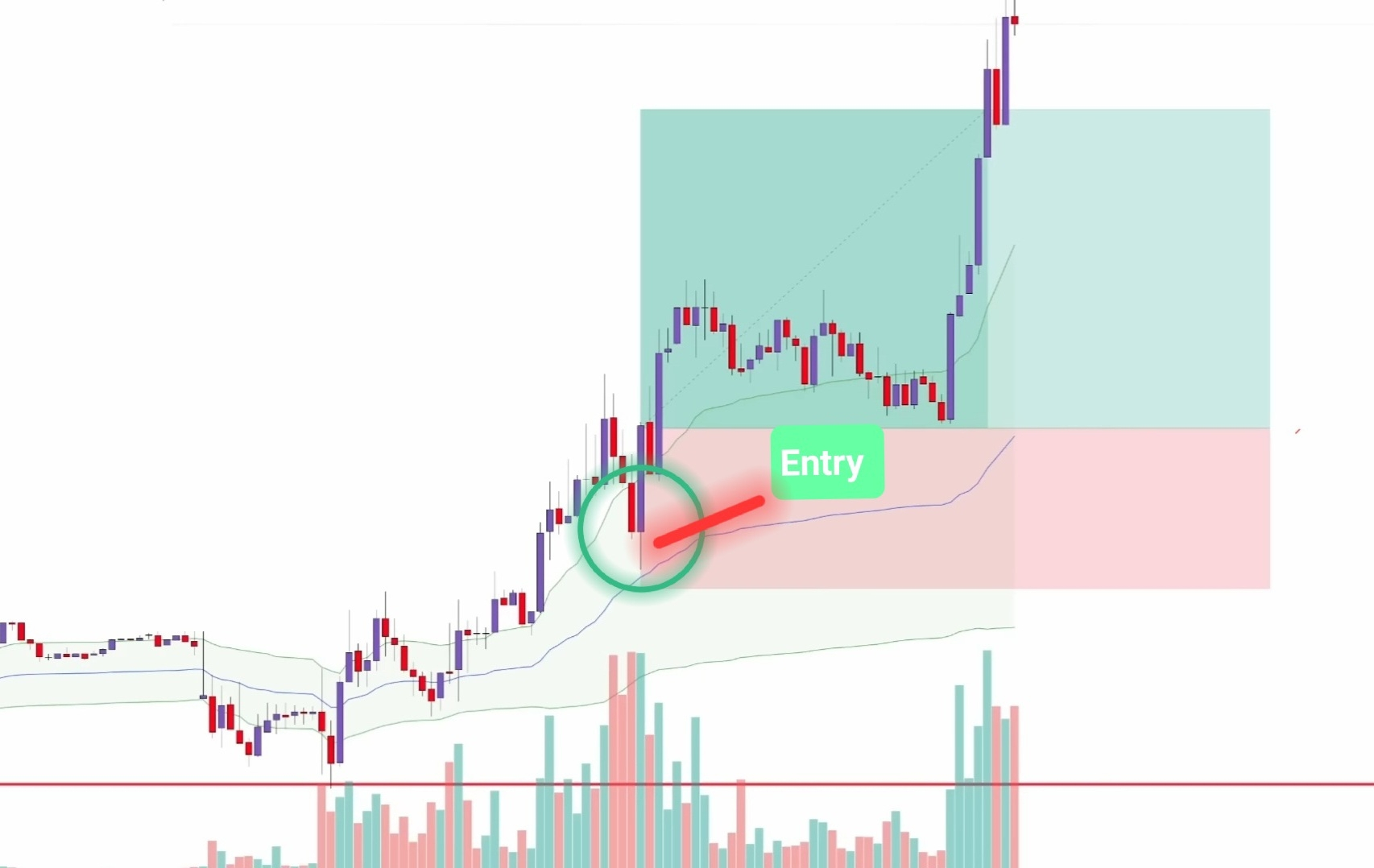 Bounce (Отскок): Цена касается VWAP сверху и появляется паттерн на покупку. Это значит, крупные игроки защищают свою среднюю цену.