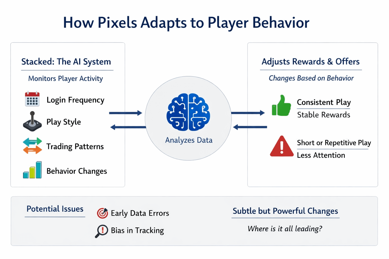 Я начал замечать что-то маленькое, но интересное, проведя время в Pixels. Награды и сделки больше не казались неизменными. Казалось, что они немного менялись в зависимости от того, как я играл, почти как будто игра подстраивалась под то, что я делал.