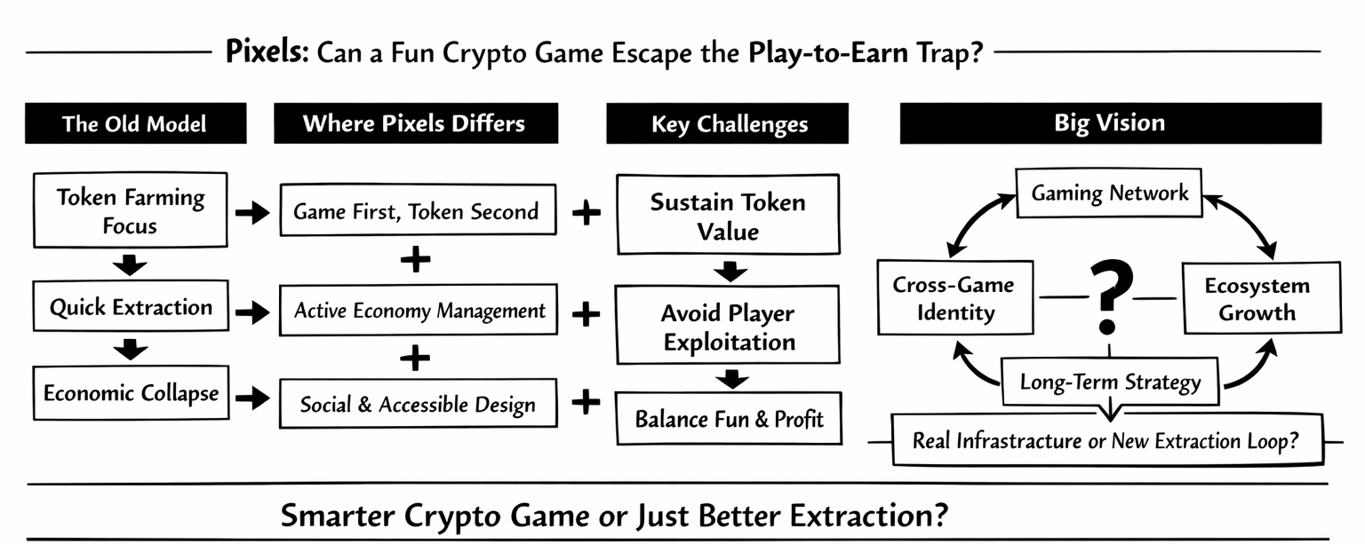 Pixels may be building something more durable than the usual play-to-earn machine. Or it may just be the cleanest, most playable version of the same extraction logic the sector has been struggling with all along.