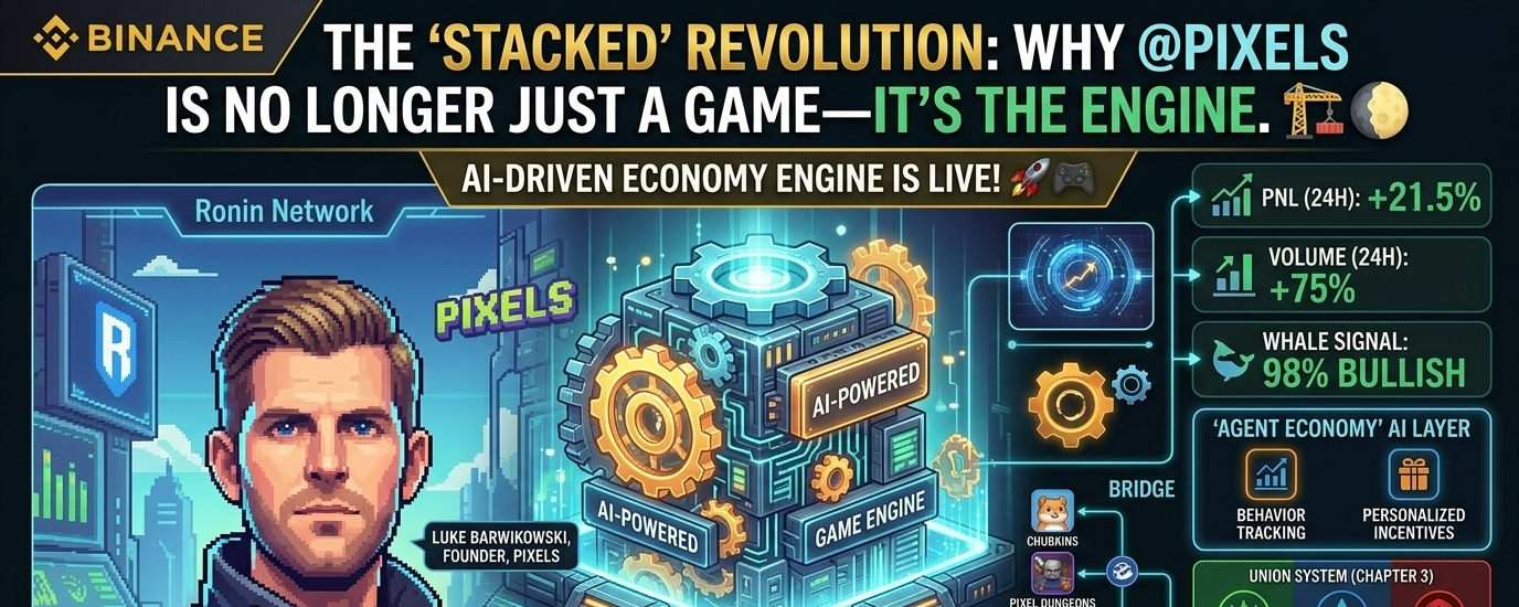 The Stacked ecosystem is undergoing a fundamental rerating as it shifts from a singular gaming title into a comprehensive infrastructure layer for the next generation of Web3 entertainment. For those tracking the tape, the signal is clear: @Pixels is no longer just a "farming simulator"—it is the backbone of an AI-driven game economy engine. 🧱👾