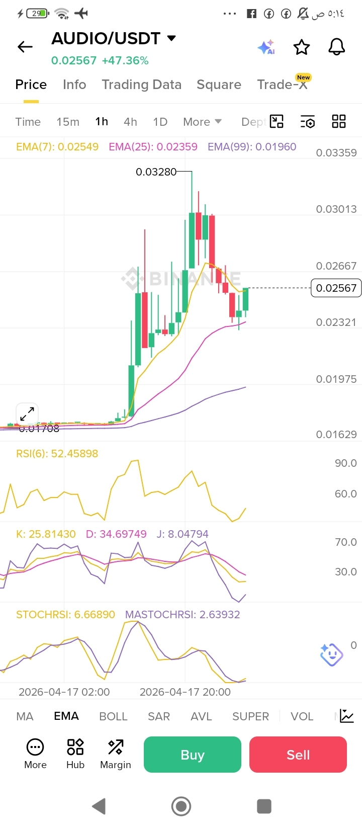 EMA 25 (Фиолетовый - 0.02359): Это действовало как динамическая поддержка во время недавнего падения. Пока цена удерживается выше этого уровня, среднесрочный тренд остается бычьим.