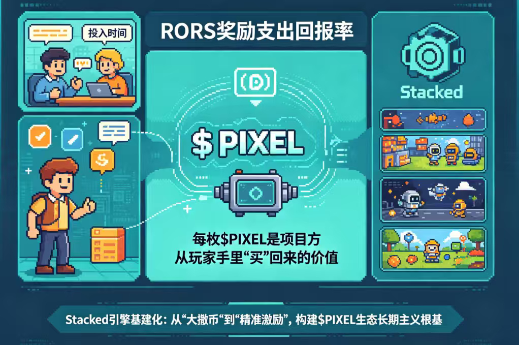 @Pixels 的白皮书里其实藏着一个非常硬核的经营逻辑,叫做 RORS奖励支出回报率。这个概念彻底颠覆了“发钱买流量”的陈旧思维。