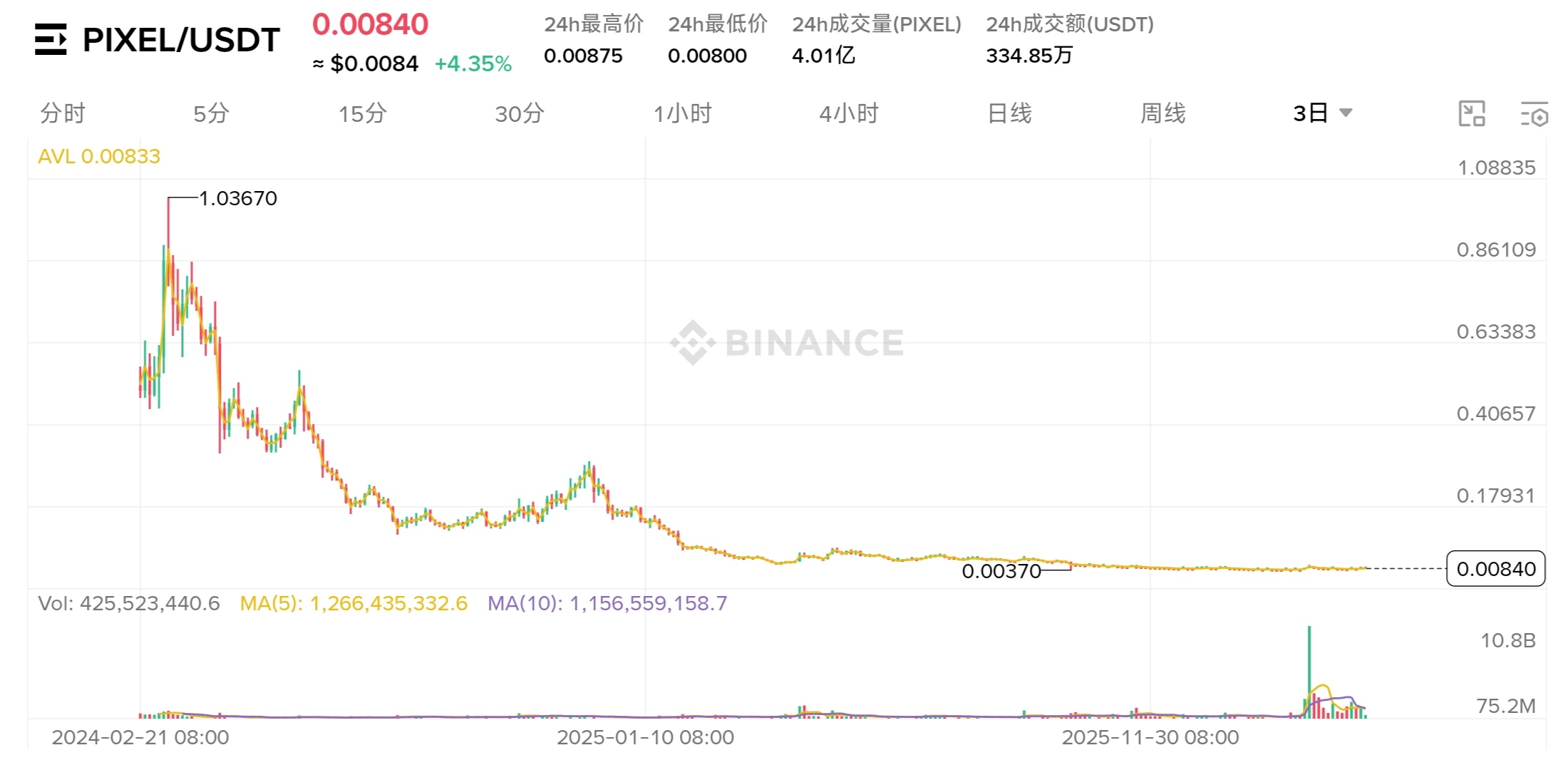 pixel从最高1.0367已经跌到现在0.0083,“巅峰诞生拥趸,黄昏见证信徒”,期待pixel起飞。
