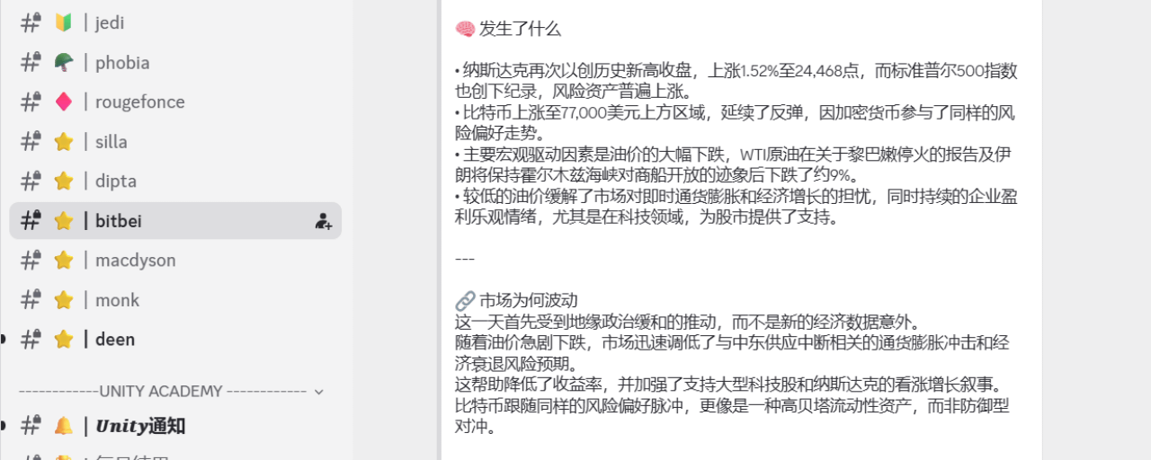 在 bitbei 的视角中,4月17日 的上涨延续了反弹叙事,但这不仅仅是加密货币的独舞。比特币紧跟纳斯达克的脚步,两者都受益于较低油价带来的紧缩金融状况压力释放。这种“同步上涨”说明,比特币正在成为全球大型科技股和增长叙事的重要组成部分。
