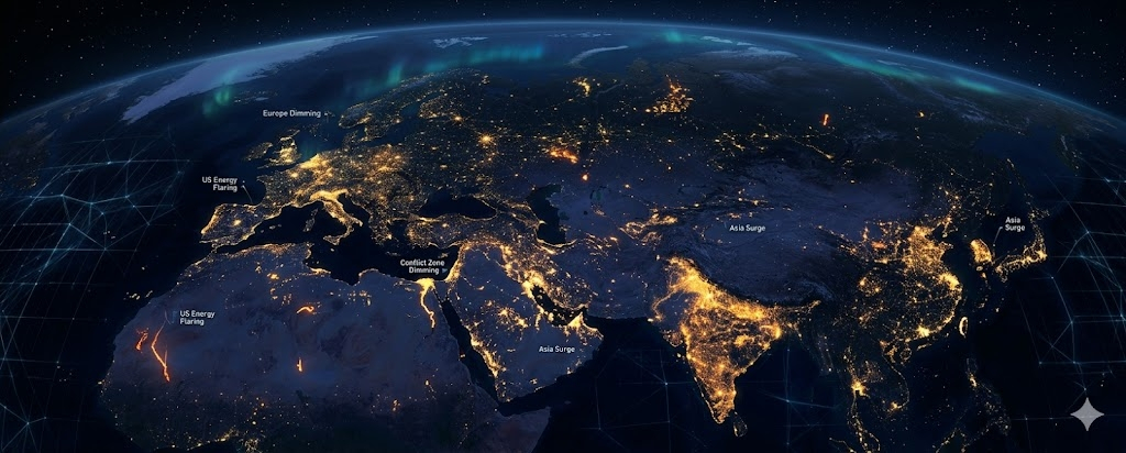 The Flaring Factor: In the US, while some East Coast cities dimmed due to LED transitions, regions like the Permian Basin surged in brightness due to record-level natural gas flaring.